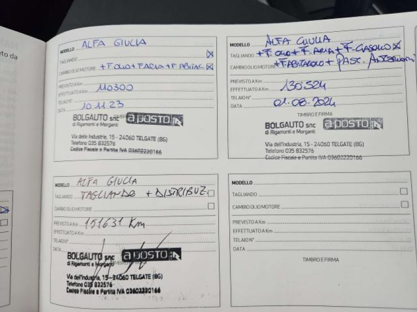 ALFA ROMEO Giulia Diesel in vendita a Martinengo (Bergamo) Bracciolo, Climatizzatore Manuale, Park Distance Control, Sedile passeggero ribaltabile, Sensori Luci, Sensori Pioggia, Sensori di parcheggio posteriori, Navigatore, Start e Stop, Supporto lombare, Volante in pelle, Volante multifunzione, Android auto, Autoradio, Bluetooth, Computer Bordo, Lettore CD MP3, Presa USB / AUX, Kit vivavoce, Filtro antiparticolato, Sedili sportivi, Specchietto retrovisore con funzione antiabbagliamento, ABS, Airbag, Airbag Laterale, Airbag posteriore, Antifurto, Chiusura Centralizzata, Chiusura centralizzata telecomandata, Lane assist (controllo corsia), Fari LED, Frenata di emergenza assistita, Immobilizzatore Elettronico, Isofix, Servosterzo, Sistema di controllo pressione pneumatici, Tagliandi certificati, Filtro antiparticolato