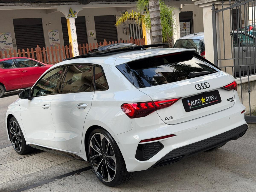 AUDI A3 Sportback Diesel in vendita a Barcellona Pozzo di Gotto (Messina) ABS, Adaptive Cruise Control, Airbag, Airbag Laterale, Airbag Passeggero, Alzacristalli Elettrici, Android auto, Antifurto, Antifurto elettronico, Antifurto satellitare, Apple car play, Appoggiabraccia centrale, Appoggiatesta posteriore, Assetto sportivo, Autoradio, Blind spot monitor, Bloccasterzo Meccanico, Bluetooth, Bracciolo, Cambio al volante, Carica smartphone a induzione, Cerchi in Lega, Chiave con transponder, Chiusura Centralizzata, Chiusura centralizzata telecomandata, Climatizzatore Automatico, Climatizzatore bizona, Comandi al volante, Comandi vocali, Computer Bordo, Cruise Control, Cruise Control Adattivo, ESP (Controllo stabilita), Fari di profondita antiabbagliamento, Fari full-LED, Fari LED, Frenata di emergenza assistita, Freno di stazionamento elettrico, Gancio Traino, Head-up display, Idroguida, Immobilizzatore Elettronico, Impianto audio, Indicatore temperatura esterna, Interni Pelle, Isofix, Kit vivavoce, Lane assist (controllo corsia), Lettore CD MP3, Leve al volante, Limitatore di velocita, Luce d'ambiente, Luci diurne LED, Marmitta catalitica, Navigatore, Parabrezza riscaldabile, Paraurti in tinta, Parcheggio assistito, Park Distance Control, Partenza assistita su pendenza, Pneumatici estivi, Portellone posteriore elettrico, Presa USB / AUX, Regolazione Sedili Elettrica, Retrovisori ripiegabili elettricamente, Riconoscimento segnali stradali, Ruotino di scorta, Schermo multifunzione, Sedile guida regolabile in altezza, Sedili massaggianti, Sedili Riscaldati, Sedili sportivi, Sensori di parcheggio anteriori, Sensori di parcheggio posteriori, Sensori Luci, Sensori Pioggia, Servosterzo, Sistema di chiamata d'emergenza, Sistema di controllo pressione pneumatici, Sistema di riconoscimento della stanchezza, Sistema elettronico della stab, Specchietti Elettrici, Specchietto retrovisore con funzione antiabbagliamento, Start e Stop, Sterzo regolabile in altezza, Supporto lombare, Tagliandi certificati, Telecamera Posteriore, Tendine parasole, Tetto panoramico, Tettuccio Apribile, Touch, Trazione Integrale, Veicolo non fumatori, Vetri Oscurati, Volante in pelle, Volante multifunzione