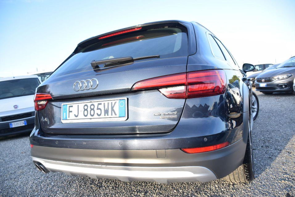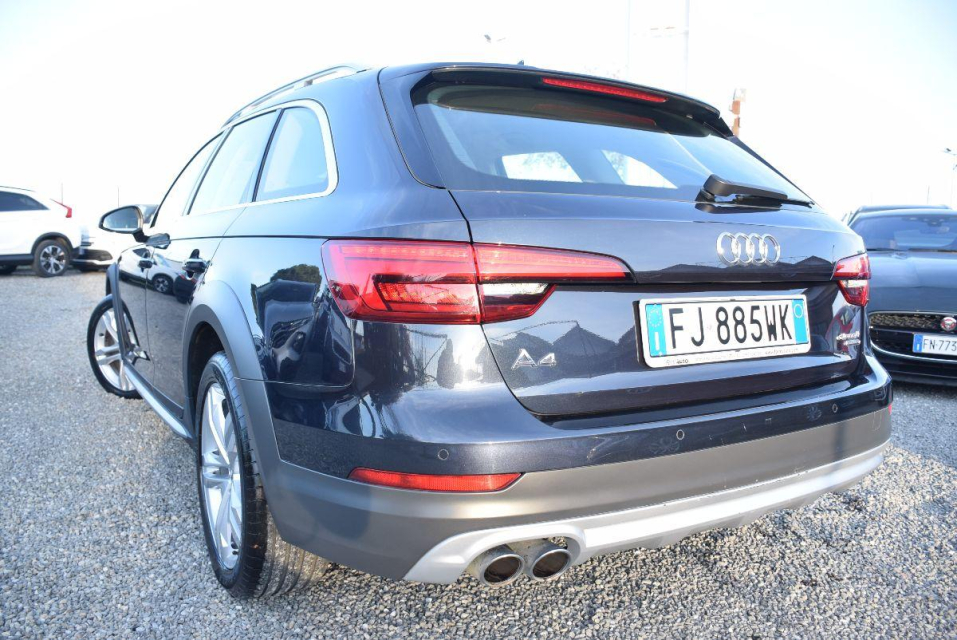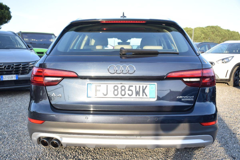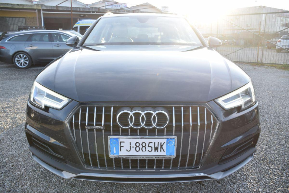 AUDI A4 Allroad Diesel in vendita a Montalto di Castro (Viterbo) ABS, Airbag, Airbag Laterale, Airbag Passeggero, Airbag posteriore, Airbag testa, Alzacristalli Elettrici, Antifurto elettronico, Appoggiabraccia centrale, Appoggiabraccia posteriore cen, Appoggiatesta posteriore, Assetto sportivo, Autoradio, Autoradio digitale, Bloccasterzo Meccanico, Bluetooth, Bracciolo, Cambio al volante, Cerchi in Lega, Chiave con transponder, Chiusura Centralizzata, Chiusura centralizzata telecomandata, Climatizzatore aut. 3 zone, Climatizzatore Automatico, Comandi al volante, Computer Bordo, Controllo Trazione (TSC - ASR), Correttore assetto fari, Cruise Control, EDS (Antislittamento in partenza), ESP (Controllo stabilita), Fari di profondita antiabbagliamento, Fari full-LED, Fari LED, Fendinebbia, Filtro antiparticolato, Frenata di emergenza assistita, Freno di stazionamento elettrico, Idroguida, Immobilizzatore Elettronico, Impianto audio, Indicatore temperatura esterna, Interni in materiale pregiato, Interni in tinta, Interni Pelle, Isofix, Kit vivavoce, Lavatergifari, Lettore CD, Lettore CD MP3, Leve al volante, Limitatore di velocita, Luce d'ambiente, Luci diurne, Luci diurne LED, Marmitta catalitica, Navigatore, Paraurti in tinta, Parcheggio assistito, Park Distance Control, Partenza assistita su pendenza, Portellone posteriore elettrico, Presa USB / AUX, Retrovisori ripiegabili elettricamente, Riconoscimento segnali stradali, Schermo multifunzione, Sedile guida regolabile in altezza, Sedili posteriori sdoppiabili, Sedili sportivi, Sensori di parcheggio anteriori, Sensori di parcheggio posteriori, Sensori Luci, Sensori Pioggia, Servosterzo, Sistema di controllo pressione pneumatici, Sistema elettronico della stab, Specchietti Elettrici, Specchietto retrovisore con funzione antiabbagliamento, Spoiler, Start e Stop, Sterzo regolabile in altezza, Supporto lombare, Tagliandi certificati, Trazione Integrale, Vetri Oscurati, Volante in pelle, Volante multifunzione