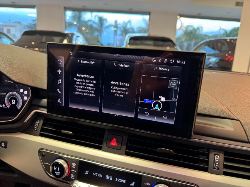 AUDI A4 Avant Diesel in vendita a San Michele Salentino (Brindisi) ABS, Adaptive Cruise Control, Adatta ai neopatentati, Airbag, Airbag Laterale, Airbag Passeggero, Airbag posteriore, Airbag testa, Alzacristalli Elettrici, Android auto, Appoggiabraccia centrale, Autoradio, Autoradio digitale, Avviso di distanza, Bluetooth, Cerchi in Lega, Chiusura Centralizzata, Climatizzatore aut. 3 zone, Comandi al volante, Computer Bordo, Cruise Control, Cruise Control Adattivo, Fari full-LED, Fari LED, Freno di stazionamento elettrico, Idroguida, Immobilizzatore Elettronico, Impianto audio, Lettore CD, Leve al volante, Luci diurne, Luci diurne LED, Navigatore, Parcheggio assistito, Park Distance Control, Partenza assistita su pendenza, Presa USB / AUX, Schermo multifunzione, Sedili sportivi, Sensori di parcheggio posteriori, Sensori Luci, Sensori Pioggia, Servosterzo, Sistema di chiamata d'emergenza, Sistema di controllo pressione pneumatici, Specchietti Elettrici, Start e Stop, Tagliandi certificati, Tetto panoramico, Tettuccio Apribile, Touch, Veicolo non fumatori, Volante in pelle, Volante multifunzione