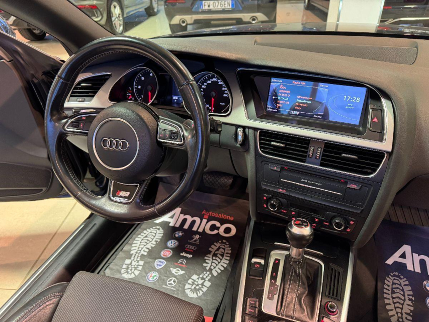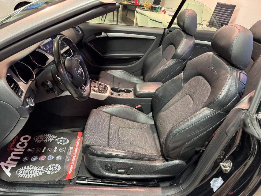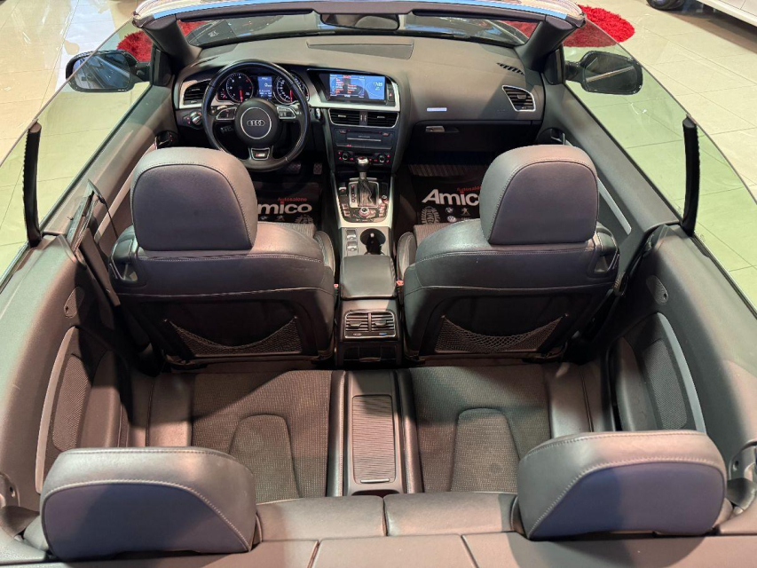 AUDI A5 Cabrio Diesel in vendita a San Michele Salentino (Brindisi) ABS, Airbag, Airbag Laterale, Alzacristalli Elettrici, Android auto, Apple car play, Appoggiabraccia centrale, Appoggiatesta posteriore, Autoradio, Bluetooth, Bracciolo, Cerchi in Lega, Chiusura Centralizzata, Climatizzatore Automatico, Climatizzatore bizona, Comandi al volante, Computer Bordo, Controllo Trazione (TSC - ASR), Correttore assetto fari, Cruise Control, EDS (Antislittamento in partenza), ESP (Controllo stabilita), Fari bi-Xeno, Fari Xenon, Fendinebbia, Filtro antiparticolato, Idroguida, Immobilizzatore Elettronico, Indicatore temperatura esterna, Kit vivavoce, Lavatergifari, Lettore CD MP3, Limitatore di velocita, Luci diurne LED, Navigatore, Parabrezza riscaldabile, Parcheggio assistito, Presa USB / AUX, Regolazione Sedili Elettrica, Retrovisori ripiegabili elettricamente, Ruotino di scorta, Schermo multifunzione, Sedile guida regolabile in altezza, Sedili sportivi, Sensori di parcheggio anteriori, Sensori di parcheggio posteriori, Sensori Luci, Sensori Pioggia, Servosterzo, Servotronic, Sistema di controllo pressione pneumatici, Specchietti Elettrici, Start e Stop, Sterzo regolabile in altezza, Tagliandi certificati, Trazione Integrale, Veicolo non fumatori, Vetri Oscurati, Volante in pelle, Volante multifunzione