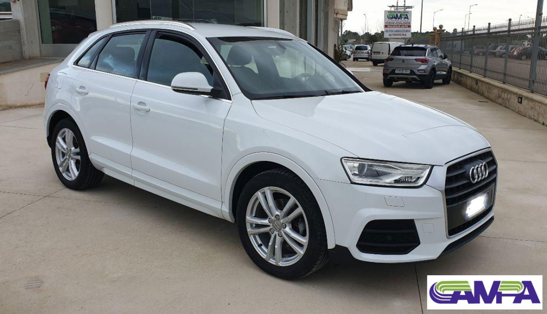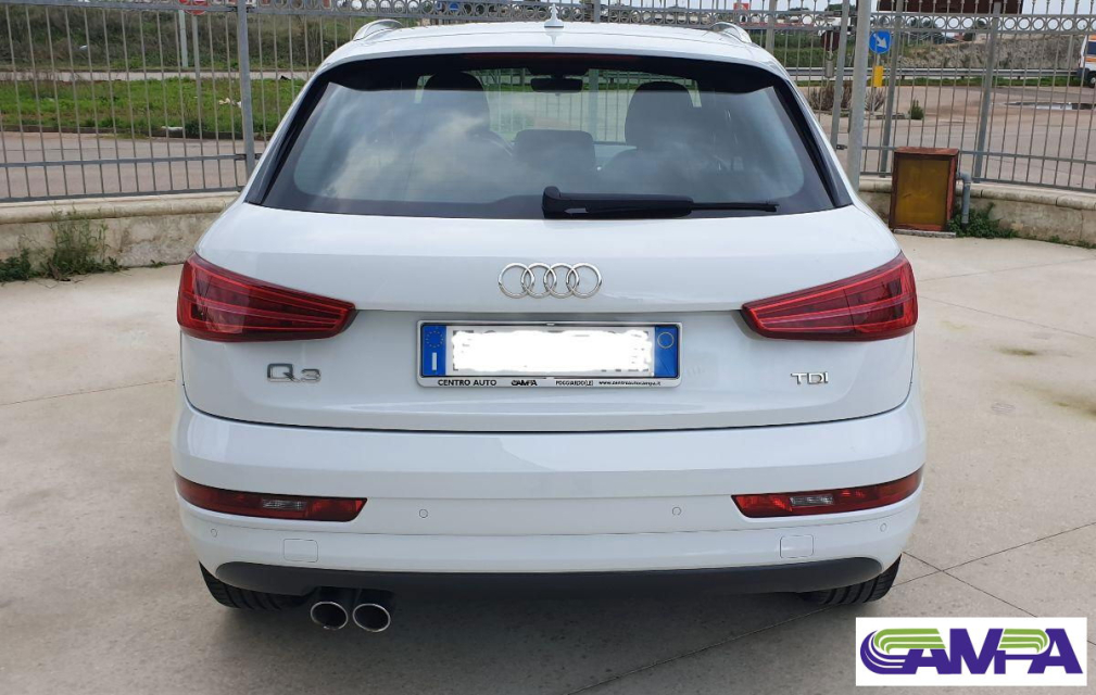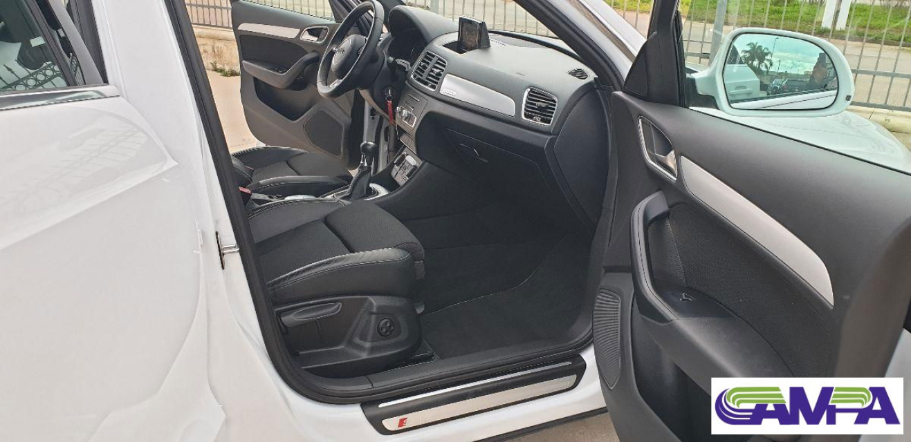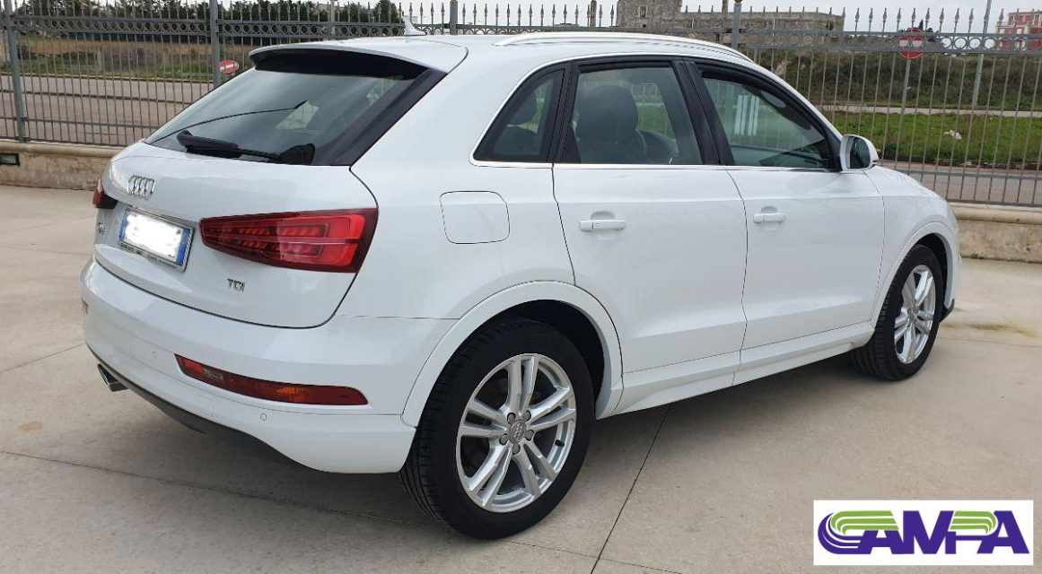 AUDI Q3 Diesel in vendita a Poggiardo (Lecce) ABS, Airbag, Airbag Laterale, Airbag Passeggero, Airbag posteriore, Airbag testa, Alzacristalli Elettrici, Antifurto, Appoggiabraccia centrale, Appoggiabraccia posteriore cen, Appoggiatesta posteriore, Assetto sportivo, Autoradio, Autoradio digitale, Bloccasterzo Meccanico, Bluetooth, Bracciolo, Cerchi in Lega, Chiusura Centralizzata, Climatizzatore Automatico, Climatizzatore bizona, Comandi al volante, Computer Bordo, Controllo Trazione (TSC - ASR), Cruise Control, ESP (Controllo stabilita), Fari bi-Xeno, Fari Xenon, Fendinebbia, Filtro antiparticolato, Freno di stazionamento elettrico, Idroguida, Immobilizzatore Elettronico, Indicatore temperatura esterna, Interni in materiale pregiato, Interni Pelle, Isofix, Kit vivavoce, Lettore CD, Lettore CD MP3, Limitatore di velocita, Luci diurne LED, Navigatore, Paraurti in tinta, Pneumatici estivi, Presa USB / AUX, Regolazione Sedili Elettrica, Retrovisori ripiegabili elettricamente, Ruota di scorta, Schermo multifunzione, Sedile guida regolabile in altezza, Sedili posteriori sdoppiabili, Sedili sportivi, Sensori di parcheggio posteriori, Sensori Pioggia, Servosterzo, Sistema di controllo pressione pneumatici, Specchietti Elettrici, Spoiler, Start e Stop, Sterzo regolabile in altezza, Supporto lombare, Trazione Integrale, Veicolo non fumatori, Vetri Oscurati, Volante in pelle, Volante multifunzione
