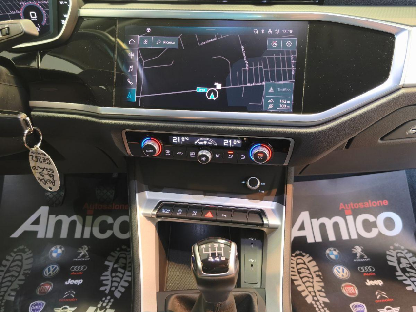 AUDI Q3 Diesel in vendita a San Michele Salentino (Brindisi) ABS, Adaptive Cruise Control, Airbag, Airbag Laterale, Airbag Passeggero, Airbag testa, Alzacristalli Elettrici, Android auto, Apple car play, Appoggiabraccia centrale, Appoggiatesta posteriore, Autoradio, Autoradio digitale, Avviso di distanza, Bluetooth, Bracciolo, Cerchi in Lega, Chiave con transponder, Chiusura Centralizzata, Climatizzatore aut. 3 zone, Climatizzatore Automatico, Comandi al volante, Comandi vocali, Computer Bordo, Correttore assetto fari, Cruise Control, Cruise Control Adattivo, EDS (Antislittamento in partenza), ESP (Controllo stabilita), Fari full-LED, Fari LED, Freno di stazionamento elettrico, Idroguida, Immobilizzatore Elettronico, Indicatore temperatura esterna, Lane assist (controllo corsia), Luci diurne, Luci diurne LED, Navigatore, Park Distance Control, Partenza assistita su pendenza, Portellone posteriore elettrico, Presa USB / AUX, Retrovisori ripiegabili elettricamente, Riconoscimento segnali stradali, Schermo multifunzione, Sedile guida regolabile in altezza, Sedili posteriori sdoppiabili, Sedili sportivi, Sensori di parcheggio anteriori, Sensori di parcheggio posteriori, Sensori Luci, Sensori Pioggia, Servosterzo, Sistema di chiamata d'emergenza, Sistema di controllo pressione pneumatici, Specchietti Elettrici, Start e Stop, Sterzo regolabile in altezza, Supporto lombare, Tagliandi certificati, Touch, Veicolo non fumatori, Vetri Oscurati, Volante in pelle, Volante multifunzione