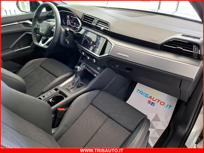 AUDI Q3 Diesel in vendita a Taranto (Taranto) ABS, Adaptive Cruise Control, Airbag, Airbag Laterale, Airbag Passeggero, Airbag posteriore, Airbag testa, Alzacristalli Elettrici, Android auto, Apple car play, Appoggiabraccia centrale, Appoggiabraccia posteriore cen, Appoggiatesta posteriore, Assetto sportivo, Autoradio digitale, Avviso di distanza, Blind spot monitor, Bluetooth, Cambio al volante, Cerchi in Lega, Chiusura Centralizzata, Chiusura centralizzata telecomandata, Climatizzatore bizona, Comandi al volante, Comandi vocali, Computer Bordo, Controllo Trazione (TSC - ASR), Correttore assetto fari, Cruise Control Adattivo, ESP (Controllo stabilita), Fari di profondita antiabbagliamento, Fari full-LED, Frenata di emergenza assistita, Freno di stazionamento elettrico, Indicatore temperatura esterna, Interni in materiale pregiato, Interni Pelle, Isofix, Kit ruote antipanne, Kit vivavoce, Lane assist (controllo corsia), Leve al volante, Limitatore di velocita, Luci diurne LED, Navigatore, Paraurti in tinta, Park Distance Control, Partenza assistita su pendenza, Presa USB / AUX, Retrovisori ripiegabili elettricamente, Riconoscimento segnali stradali, Schermo multifunzione, Sedile guida regolabile in altezza, Sedili posteriori sdoppiabili, Sedili sportivi, Sensori di parcheggio anteriori, Sensori di parcheggio posteriori, Sensori Luci, Sensori Pioggia, Servosterzo, Sistema di chiamata d'emergenza, Sistema di controllo pressione pneumatici, Sistema di riconoscimento della stanchezza, Sistema elettronico della stab, Specchietti Elettrici, Spoiler, Start e Stop, Sterzo regolabile in altezza, Telecamera Posteriore, Tendine parasole, Tetto panoramico, Tettuccio Apribile, Touch, Trazione Integrale, Vetri Oscurati, Volante in pelle, Volante multifunzione