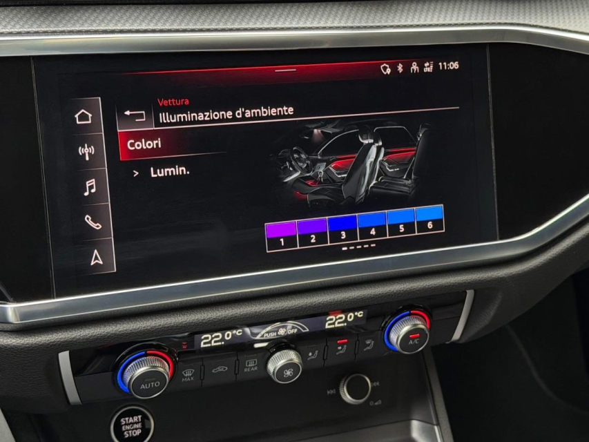 AUDI Q3 Diesel in vendita a Barcellona Pozzo di Gotto (Messina) 360 camera, ABS, Adaptive Cruise Control, Airbag, Airbag Laterale, Airbag Passeggero, Alzacristalli Elettrici, Android auto, Antifurto satellitare, Apple car play, Appoggiabraccia centrale, Appoggiabraccia posteriore cen, Appoggiatesta posteriore, Autoradio, Autoradio digitale, Blind spot monitor, Bloccasterzo Meccanico, Bluetooth, Bracciolo, Cambio al volante, Carica smartphone a induzione, Cerchi in Lega, Chiave con transponder, Chiusura Centralizzata, Chiusura centralizzata telecomandata, Climatizzatore Automatico, Climatizzatore bizona, Comandi al volante, Comandi vocali, Computer Bordo, Cruise Control, Cruise Control Adattivo, ESP (Controllo stabilita), Fari di profondita antiabbagliamento, Fari full-LED, Fari LED, Frenata di emergenza assistita, Freno di stazionamento elettrico, Idroguida, Immobilizzatore Elettronico, Indicatore temperatura esterna, Isofix, Kit vivavoce, Lane assist (controllo corsia), Leve al volante, Limitatore di velocita, Luce d'ambiente, Luci diurne, Luci diurne LED, Marmitta catalitica, Navigatore, Parabrezza riscaldabile, Paraurti in tinta, Parcheggio assistito, Park Distance Control, Partenza assistita su pendenza, Pneumatici estivi, Portellone posteriore elettrico, Retrovisori ripiegabili elettricamente, Riconoscimento segnali stradali, Ruotino di scorta, Schermo multifunzione, Sedile guida regolabile in altezza, Sedili Riscaldati, Sedili sportivi, Sensori di parcheggio anteriori, Sensori di parcheggio posteriori, Sensori Luci, Sensori Pioggia, Servosterzo, Sistema di chiamata d'emergenza, Sistema di controllo pressione pneumatici, Sistema di riconoscimento della stanchezza, Specchietti Elettrici, Specchietto retrovisore con funzione antiabbagliamento, Start e Stop, Sterzo regolabile in altezza, Tagliandi certificati, Telecamera Posteriore, Tendine parasole, Tetto panoramico, Tettuccio Apribile, Touch, Trazione Integrale, Veicolo non fumatori, Vetri Oscurati, Volante in pelle, Volante multifunzione