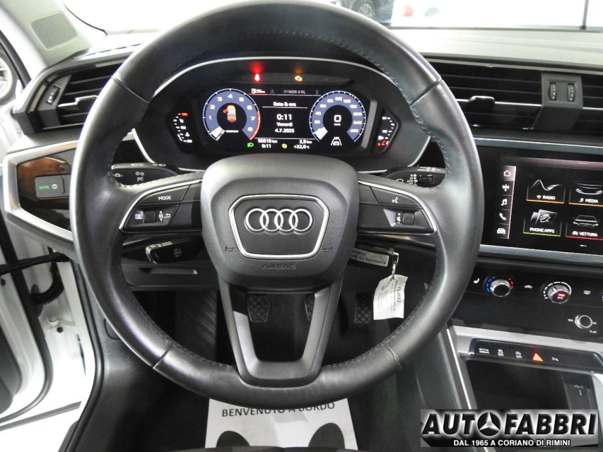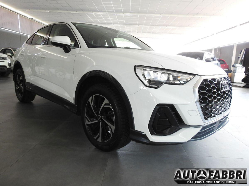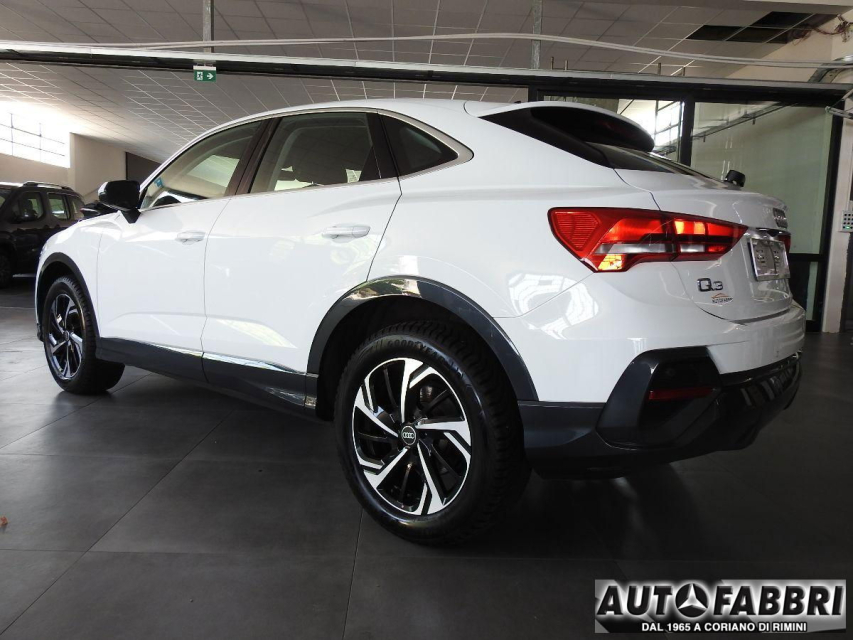 AUDI Q3 Sportback Benzina in vendita a Coriano (Rimini) ABS, Airbag, Airbag Laterale, Alzacristalli Elettrici, Android auto, Apple car play, Appoggiabraccia centrale, Autoradio, Autoradio digitale, Blue and Me, Bluetooth, Cerchi in Lega, Chiave con transponder, Chiusura Centralizzata, Climatizzatore Manuale, Comandi al volante, Comandi vocali, Controllo Trazione (TSC - ASR), Correttore assetto fari, Cruise Control, EDS (Antislittamento in partenza), ESP (Controllo stabilita), Fari LED, Hotspot Wi-Fi, Idroguida, Immobilizzatore Elettronico, Impianto audio, Indicatore temperatura esterna, Isofix, Luce d'ambiente, Luci diurne, Parcheggio assistito, Park Distance Control, Pneumatici quattro stagioni, Presa USB / AUX, Retrovisori ripiegabili elettricamente, Schermo multifunzione, Sensori di parcheggio posteriori, Sensori Luci, Sensori Pioggia, Sistema di controllo pressione pneumatici, Sistema elettronico della stab, Specchietti Elettrici, Sterzo regolabile in altezza, Telecamera Posteriore, Veicolo non fumatori, Volante in pelle, Volante multifunzione