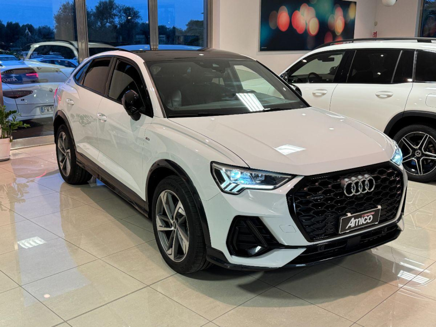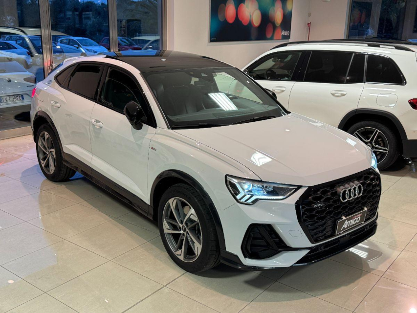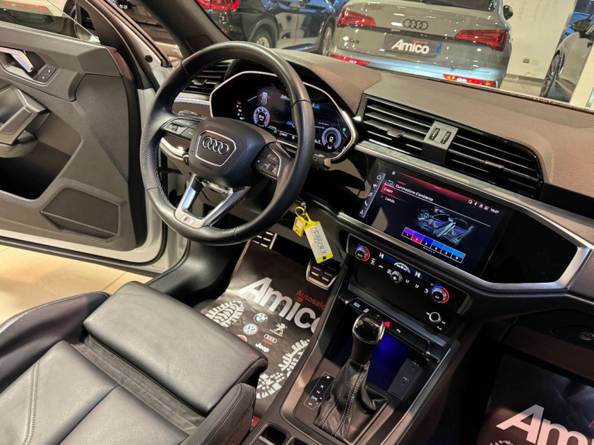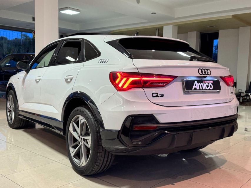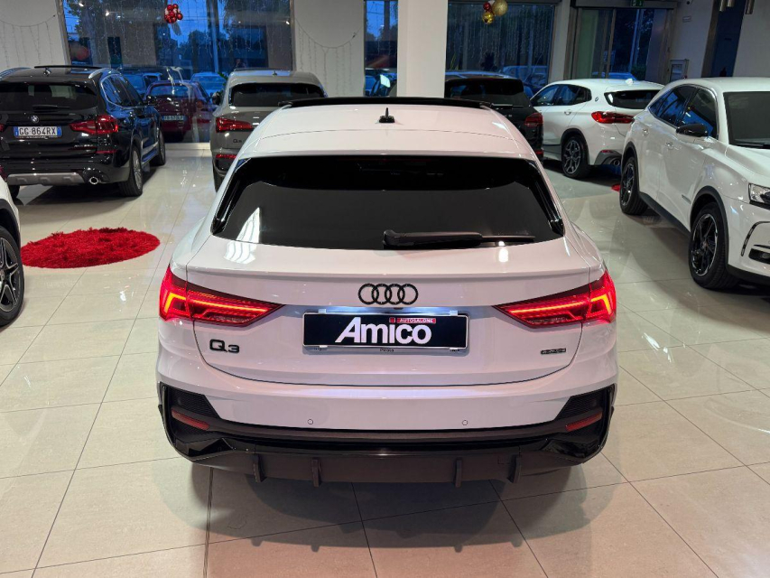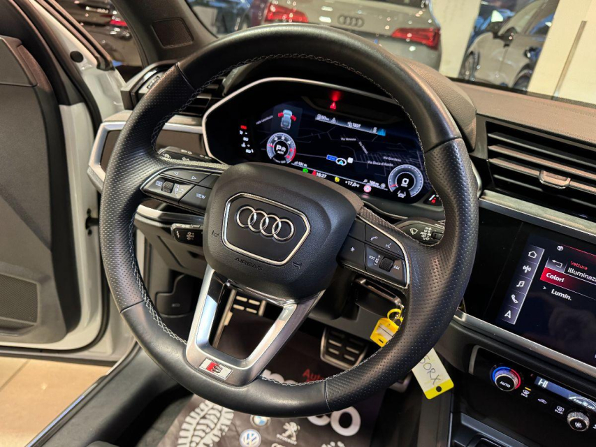 AUDI Q3 Sportback Diesel in vendita a San Michele Salentino (Brindisi) 360 camera, ABS, Adaptive Cruise Control, Airbag, Airbag Laterale, Airbag Passeggero, Airbag testa, Alzacristalli Elettrici, Android auto, Apple car play, Appoggiabraccia centrale, Autoradio, Autoradio digitale, Avviso di distanza, Bluetooth, Cambio al volante, Carica smartphone a induzione, Cerchi in Lega, Chiave con transponder, Chiusura Centralizzata, Climatizzatore aut. 3 zone, Comandi vocali, Computer Bordo, Controllo Trazione (TSC - ASR), Correttore assetto fari, Cruise Control, Cruise Control Adattivo, ESP (Controllo stabilita), Fari bi-Xeno, Fari full-LED, Fari LED, Frenata di emergenza assistita, Freno di stazionamento elettrico, Idroguida, Immobilizzatore Elettronico, Impianto audio, Indicatore temperatura esterna, Interni Pelle, Lane assist (controllo corsia), Leve al volante, Limitatore di velocita, Luce d'ambiente, Luci diurne, Luci diurne LED, Navigatore, Parcheggio assistito, Park Distance Control, Partenza assistita su pendenza, Portellone posteriore elettrico, Presa USB / AUX, Retrovisori ripiegabili elettricamente, Riconoscimento segnali stradali, Schermo multifunzione, Sedili sportivi, Sensori di parcheggio anteriori, Sensori di parcheggio posteriori, Sensori Luci, Sensori Pioggia, Servosterzo, Sistema di chiamata d'emergenza, Sistema di controllo pressione pneumatici, Sistema di riconoscimento della stanchezza, Specchietti Elettrici, Start e Stop, Sterzo regolabile in altezza, Supporto lombare, Tagliandi certificati, Telecamera Posteriore, Tetto panoramico, Tettuccio Apribile, Touch, Trazione Integrale, Veicolo non fumatori, Vetri Oscurati, Volante in pelle, Volante multifunzione