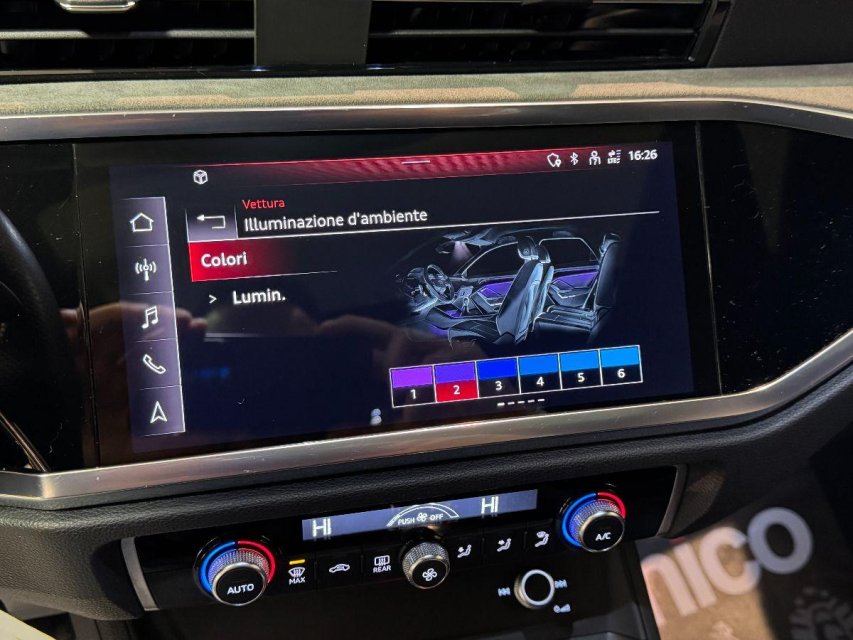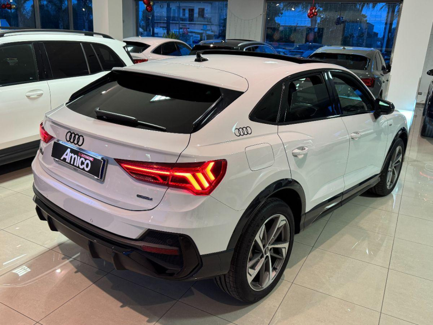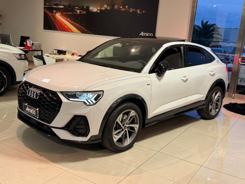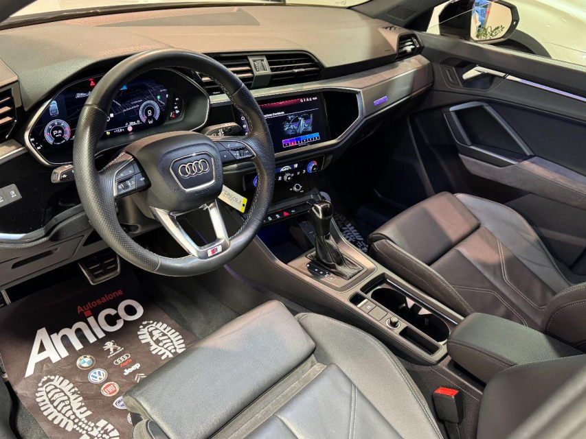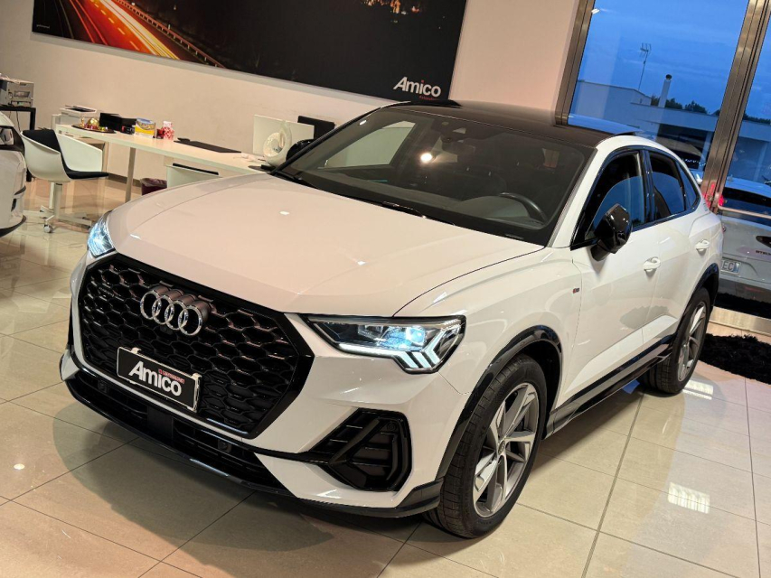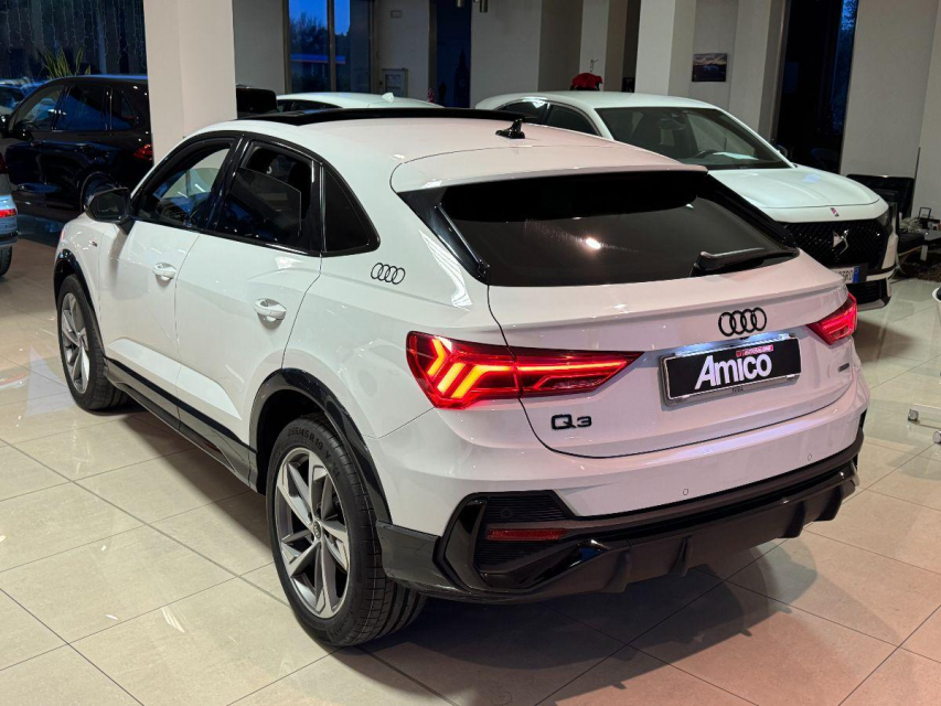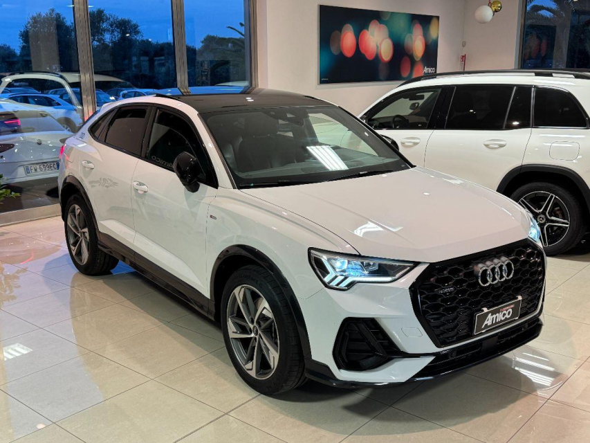 AUDI Q3 Sportback Diesel in vendita a San Michele Salentino (Brindisi) 360 camera, ABS, Adaptive Cruise Control, Airbag, Airbag Laterale, Airbag Passeggero, Airbag testa, Alzacristalli Elettrici, Android auto, Apple car play, Appoggiabraccia centrale, Autoradio, Autoradio digitale, Avviso di distanza, Bluetooth, Cambio al volante, Carica smartphone a induzione, Cerchi in Lega, Chiave con transponder, Chiusura Centralizzata, Climatizzatore aut. 3 zone, Comandi vocali, Computer Bordo, Controllo Trazione (TSC - ASR), Correttore assetto fari, Cruise Control, Cruise Control Adattivo, ESP (Controllo stabilita), Fari bi-Xeno, Fari full-LED, Fari LED, Frenata di emergenza assistita, Freno di stazionamento elettrico, Idroguida, Immobilizzatore Elettronico, Impianto audio, Indicatore temperatura esterna, Interni Pelle, Lane assist (controllo corsia), Leve al volante, Limitatore di velocita, Luce d'ambiente, Luci diurne, Luci diurne LED, Navigatore, Parcheggio assistito, Park Distance Control, Partenza assistita su pendenza, Portellone posteriore elettrico, Presa USB / AUX, Retrovisori ripiegabili elettricamente, Riconoscimento segnali stradali, Schermo multifunzione, Sedili sportivi, Sensori di parcheggio anteriori, Sensori di parcheggio posteriori, Sensori Luci, Sensori Pioggia, Servosterzo, Sistema di chiamata d'emergenza, Sistema di controllo pressione pneumatici, Sistema di riconoscimento della stanchezza, Specchietti Elettrici, Start e Stop, Sterzo regolabile in altezza, Supporto lombare, Tagliandi certificati, Telecamera Posteriore, Tetto panoramico, Tettuccio Apribile, Touch, Trazione Integrale, Veicolo non fumatori, Vetri Oscurati, Volante in pelle, Volante multifunzione