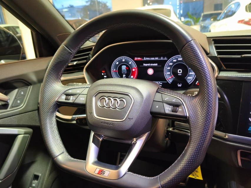 AUDI Q3 Sportback Diesel in vendita a San Michele Salentino (Brindisi) ABS, Adaptive Cruise Control, Airbag, Airbag Laterale, Airbag Passeggero, Airbag posteriore, Airbag testa, Alzacristalli Elettrici, Android auto, Apple car play, Appoggiabraccia centrale, Appoggiabraccia posteriore cen, Appoggiatesta posteriore, Autoradio, Autoradio digitale, Avviso di distanza, Blue and Me, Bluetooth, Bracciolo, Cambio al volante, Cerchi in Lega, Chiave con transponder, Chiusura Centralizzata, Climatizzatore aut. 3 zone, Climatizzatore aut. 4 zone, Climatizzatore Automatico, Climatizzatore bizona, Climatizzatore Manuale, Comandi al volante, Comandi vocali, Computer Bordo, Controllo Trazione (TSC - ASR), Correttore assetto fari, Cruise Control, Cruise Control Adattivo, EDS (Antislittamento in partenza), ESP (Controllo stabilita), Fari di profondita antiabbagliamento, Fari full-LED, Fari LED, Frenata di emergenza assistita, Freno di stazionamento elettrico, Idroguida, Immobilizzatore Elettronico, Impianto audio, Indicatore temperatura esterna, Interni in materiale pregiato, Kit vivavoce, Lavatergifari, Leve al volante, Luci diurne, Luci diurne LED, Navigatore, Park Distance Control, Portellone posteriore elettrico, Presa USB / AUX, Regolazione Sedili Elettrica, Retrovisori ripiegabili elettricamente, Riscaldamento ausiliario, Schermo multifunzione, Sedile guida regolabile in altezza, Sensori di parcheggio anteriori, Sensori di parcheggio posteriori, Sensori Luci, Sensori Pioggia, Sistema di controllo pressione pneumatici, Sistema di riconoscimento della stanchezza, Sistema elettronico della stab, Specchietti Elettrici, Spoiler, Start e Stop, Sterzo regolabile in altezza, Supporto lombare, Tagliandi certificati, Touch, Trazione Integrale, Veicolo non fumatori, Vetri Oscurati, Volante in pelle, Volante multifunzione