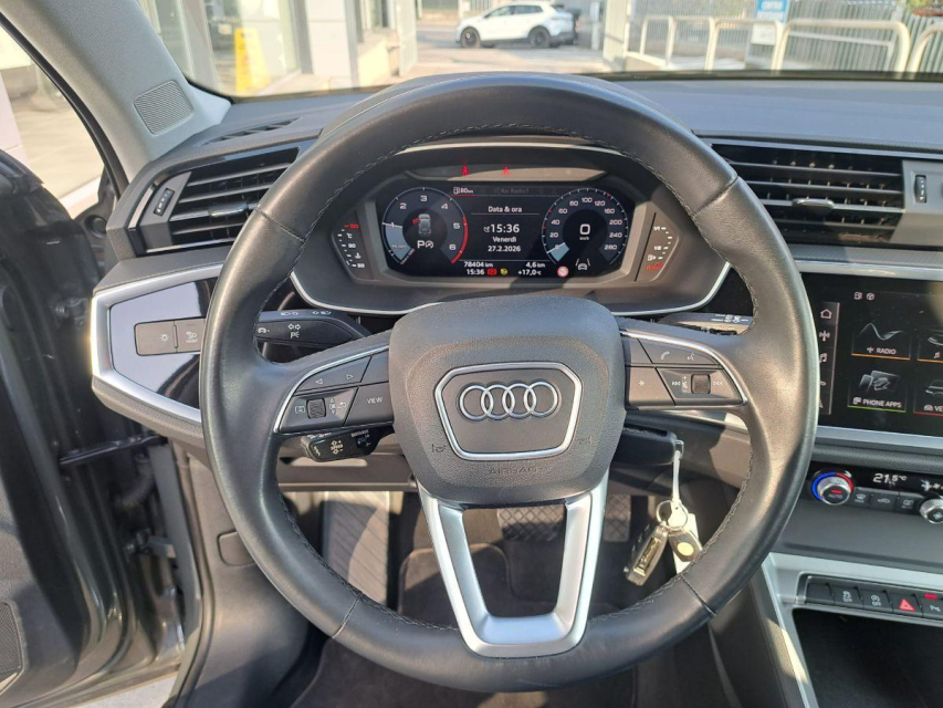 AUDI Q3 Diesel in vendita a Casnigo (Bergamo) ABS, Adaptive Cruise Control, Airbag, Airbag Laterale, Airbag Passeggero, Airbag testa, Alzacristalli Elettrici, Android auto, Apple car play, Appoggiabraccia centrale, Appoggiatesta posteriore, Autoradio, Autoradio digitale, Avviso di distanza, Blind spot monitor, Bluetooth, Bracciolo, Cerchi in Lega, Chiave con transponder, Chiusura Centralizzata, Chiusura centralizzata telecomandata, City Safety, Climatizzatore Automatico, Climatizzatore bizona, Comandi al volante, Comandi vocali, Computer Bordo, Controllo Trazione (TSC - ASR), Divisori per bagagliaio, ESP (Controllo stabilita), Fari di profondita antiabbagliamento, Fari full-LED, Fendinebbia, Filtro antiparticolato, Frenata di emergenza assistita, Freno di stazionamento elettrico, Hotspot Wi-Fi, Immobilizzatore Elettronico, Indicatore temperatura esterna, Interni in materiale pregiato, Interni Pelle, Isofix, Kit vivavoce, Lane assist (controllo corsia), Limitatore di velocita, Luci diurne LED, Navigatore, Paraurti in tinta, Partenza assistita su pendenza, Portellone posteriore elettrico, Presa USB / AUX, Retrovisori ripiegabili elettricamente, Riconoscimento segnali stradali, Ruotino di scorta, Schermo multifunzione, Sedile guida regolabile in altezza, Sedili posteriori scorrevoli, Sedili posteriori sdoppiabili, Sensori di parcheggio anteriori, Sensori di parcheggio posteriori, Sensori Luci, Sensori Pioggia, Servosterzo, Sistema di chiamata d'emergenza, Sistema di controllo pressione pneumatici, Sistema di riconoscimento della stanchezza, Sistema elettronico della stab, Specchietti Elettrici, Spoiler, Start e Stop, Sterzo regolabile in altezza, Streaming musicale integrato, Tagliandi certificati, Touch, Trazione Integrale, Veicolo non fumatori, Volante in pelle, Volante multifunzione