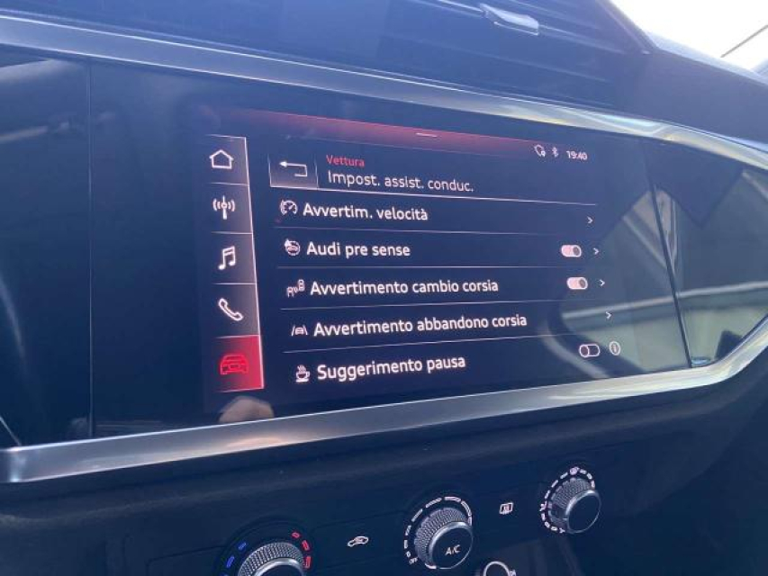 AUDI Q3 Diesel in vendita a Savona (Savona) Bracciolo, Climatizzatore Manuale, Climatizzatore bizona, Partenza assistita su pendenza, Park Distance Control, Portellone posteriore elettrico, Sensori Luci, Sensori Pioggia, Sensori di parcheggio anteriori, Sensori di parcheggio posteriori, Navigatore, Specchietti Elettrici, Start e Stop, Supporto lombare, Volante in pelle, Volante multifunzione, Android auto, Apple car play, Autoradio, Autoradio digitale, Bluetooth, Computer Bordo, Lettore CD MP3, Schermo multifunzione, Impianto audio, Streaming musicale integrato, Presa USB / AUX, Kit vivavoce, Comandi vocali, Filtro antiparticolato, Freno di stazionamento elettrico, Luce d'ambiente, Marmitta catalitica, Portapacchi, Specchietto retrovisore con funzione antiabbagliamento, Touch, ABS, Airbag, Airbag Laterale, Airbag Passeggero, Airbag testa, Antifurto, Blind spot monitor, Chiusura Centralizzata, Chiusura centralizzata telecomandata, Controllo Trazione (TSC - ASR), Lane assist (controllo corsia), ESP (Controllo stabilita), Fari di profondita antiabbagliamento, Fari full-LED, Fari LED, Frenata di emergenza assistita, Immobilizzatore Elettronico, Isofix, Limitatore di velocita, Luci diurne LED, Servosterzo, Sistema di chiamata d'emergenza, Sistema di controllo pressione pneumatici, Sistema di riconoscimento della stanchezza, Tagliandi certificati, Filtro antiparticolato