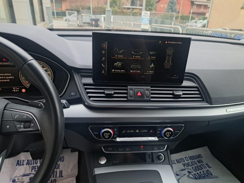 AUDI Q5 Elettrica-Diesel in vendita a Casnigo (Bergamo) ABS, Adaptive Cruise Control, Airbag, Airbag Laterale, Airbag Passeggero, Airbag testa, Alzacristalli Elettrici, Android auto, Apple car play, Appoggiabraccia centrale, Appoggiabraccia posteriore cen, Appoggiatesta posteriore, Autoradio, Autoradio digitale, Avviso di distanza, Bluetooth, Bracciolo, Cambio al volante, Cerchi in Lega, Chiave con transponder, Chiusura Centralizzata, Chiusura centralizzata telecomandata, City Safety, Climatizzatore aut. 3 zone, Comandi al volante, Comandi vocali, Computer Bordo, Controllo Trazione (TSC - ASR), Divisori per bagagliaio, ESP (Controllo stabilita), Fari di profondita antiabbagliamento, Fari full-LED, Fendinebbia, Filtro antiparticolato, Frenata di emergenza assistita, Freno di stazionamento elettrico, Hotspot Wi-Fi, Indicatore temperatura esterna, Isofix, Kit vivavoce, Lane assist (controllo corsia), Lettore CD MP3, Leve al volante, Limitatore di velocita, Luci diurne LED, Navigatore, Paraurti in tinta, Partenza assistita su pendenza, Portellone posteriore elettrico, Presa USB / AUX, Retrovisori ripiegabili elettricamente, Riconoscimento segnali stradali, Ruotino di scorta, Schermo multifunzione, Sedile guida regolabile in altezza, Sedili posteriori scorrevoli, Sedili posteriori sdoppiabili, Sedili sportivi, Sensori di parcheggio anteriori, Sensori di parcheggio posteriori, Sensori Luci, Sensori Pioggia, Servosterzo, Sistema di chiamata d'emergenza, Sistema di controllo pressione pneumatici, Sistema di riconoscimento della stanchezza, Sistema elettronico della stab, Sospensioni pneumatiche, Specchietti Elettrici, Specchietto retrovisore con funzione antiabbagliamento, Spoiler, Start e Stop, Sterzo regolabile in altezza, Streaming musicale integrato, Supporto lombare, Tagliandi certificati, Touch, Trazione Integrale, Veicolo non fumatori, Vetri Oscurati, Volante in pelle, Volante multifunzione