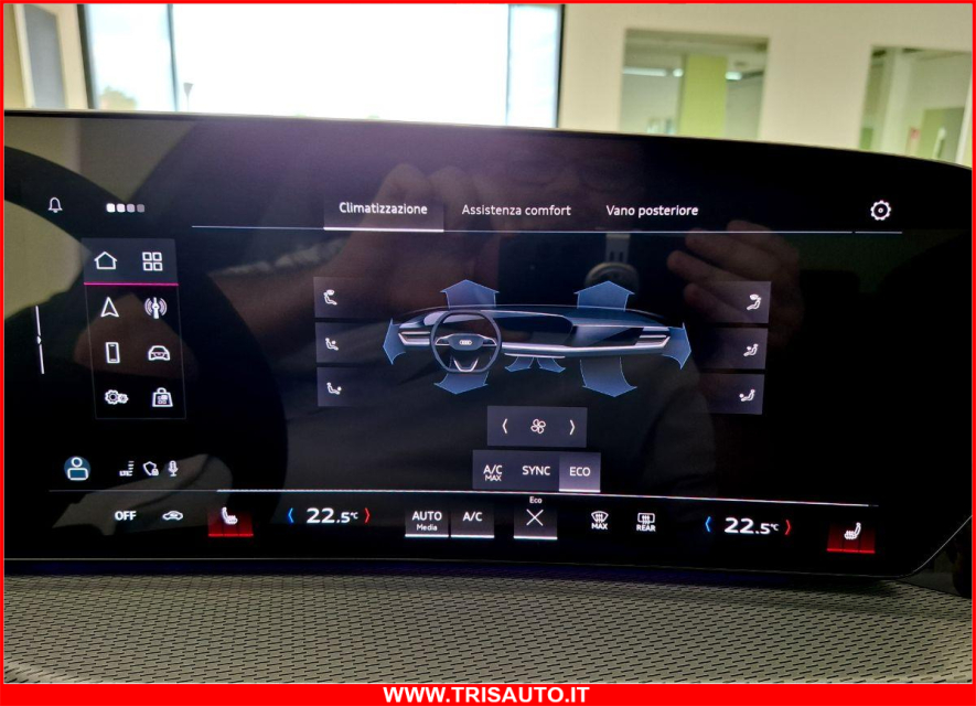 AUDI Q5 Elettrica-Diesel in vendita a Taranto (Taranto) ABS, Adaptive Cruise Control, Airbag, Airbag Laterale, Airbag Passeggero, Airbag testa, Alzacristalli Elettrici, Android auto, Apple car play, Appoggiabraccia centrale, Appoggiabraccia posteriore cen, Appoggiatesta posteriore, Assetto sportivo, Autoradio digitale, Avviso di distanza, Bluetooth, Cambio al volante, Carica smartphone a induzione, Cerchi in Lega, Chiave con transponder, Chiusura Centralizzata, Chiusura centralizzata telecomandata, Climatizzatore aut. 3 zone, Comandi al volante, Comandi vocali, Computer Bordo, Controllo Trazione (TSC - ASR), Correttore assetto fari, Cruise Control Adattivo, ESP (Controllo stabilita), Fari di profondita antiabbagliamento, Fari full-LED, Fendinebbia, Frenata di emergenza assistita, Freno di stazionamento elettrico, Indicatore temperatura esterna, Interni in materiale pregiato, Interni Pelle, Isofix, Kit ruote antipanne, Kit vivavoce, Lane assist (controllo corsia), Lavatergifari, Leve al volante, Limitatore di velocita, Luce d'ambiente, Luci diurne LED, Navigatore, Paraurti in tinta, Parcheggio assistito, Park Distance Control, Partenza assistita su pendenza, Portellone posteriore elettrico, Presa USB / AUX, Regolazione Sedili Elettrica, Retrovisori ripiegabili elettricamente, Riconoscimento segnali stradali, Schermo multifunzione, Sedile guida regolabile in altezza, Sedili posteriori sdoppiabili, Sedili Riscaldati, Sedili sportivi, Sensori di parcheggio anteriori, Sensori di parcheggio posteriori, Sensori Luci, Sensori Pioggia, Servosterzo, Sistema di chiamata d'emergenza, Sistema di controllo pressione pneumatici, Sistema di riconoscimento della stanchezza, Sistema elettronico della stab, Specchietti Elettrici, Specchietto retrovisore con funzione antiabbagliamento, Spoiler, Start e Stop, Sterzo regolabile in altezza, Streaming musicale integrato, Supporto lombare, Telecamera Posteriore, Tendine parasole, Tetto panoramico, Tettuccio Apribile, Touch, Trazione Integrale, Vetri Oscurati, Volante in pelle, Volante multifunzione