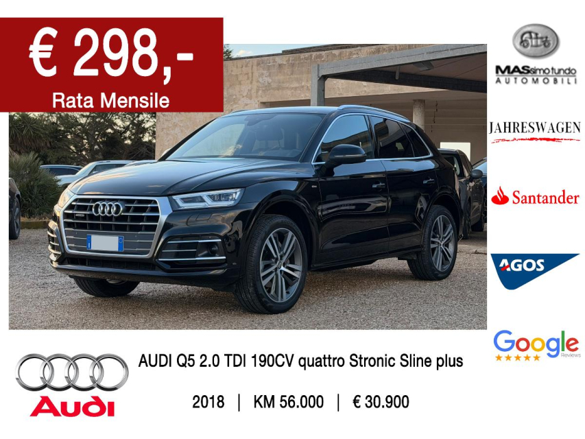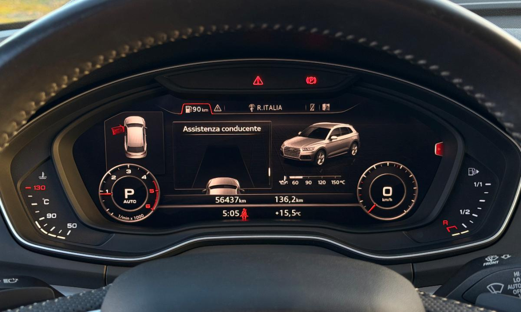 AUDI Q5 Diesel in vendita a Melissano (Lecce) ABS, Adaptive Cruise Control, Airbag, Airbag Laterale, Airbag Passeggero, Alzacristalli Elettrici, Appoggiabraccia centrale, Appoggiatesta posteriore, Autoradio, Autoradio digitale, Bloccasterzo Meccanico, Bluetooth, Bracciolo, Cambio al volante, Cerchi in Lega, Chiave con transponder, Chiusura Centralizzata, Climatizzatore Automatico, Climatizzatore bizona, Comandi al volante, Comandi vocali, Computer Bordo, Controllo Trazione (TSC - ASR), Correttore assetto fari, Cruise Control, EDS (Antislittamento in partenza), ESP (Controllo stabilita), Fari LED, Fari Xenon, Fendinebbia, Filtro antiparticolato, Idroguida, Immobilizzatore Elettronico, Indicatore temperatura esterna, Interni Pelle, Isofix, Kit vivavoce, Lavatergifari, Lettore CD, Lettore CD MP3, Limitatore di velocita, Luci diurne, Luci diurne LED, Marmitta catalitica, Navigatore, Paraurti in tinta, Park Distance Control, Partenza assistita su pendenza, Presa USB / AUX, Riconoscimento segnali stradali, Sedile guida regolabile in altezza, Sedili posteriori sdoppiabili, Sedili Riscaldati, Sedili sportivi, Sensori di parcheggio anteriori, Sensori di parcheggio posteriori, Sensori Luci, Sensori Pioggia, Servosterzo, Servotronic, Sistema di controllo pressione pneumatici, Sistema elettronico della stab, Specchietti Elettrici, Spoiler, Start e Stop, Sterzo regolabile in altezza, Supporto lombare, Tagliandi certificati, Telecamera Posteriore, Touch, Trazione Integrale, Veicolo non fumatori, Vetri Oscurati, Volante in pelle, Volante multifunzione