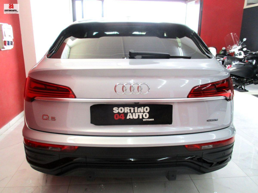 AUDI Q5 Sportback Diesel in vendita a Vittoria (Ragusa) ABS, Airbag, Airbag Laterale, Airbag Passeggero, Airbag posteriore, Airbag testa, Alzacristalli Elettrici, Appoggiabraccia centrale, Appoggiatesta posteriore, Autoradio digitale, Avviso di distanza, Blind spot monitor, Bluetooth, Cerchi in Lega, Chiave con transponder, Climatizzatore aut. 3 zone, Comandi al volante, Comandi vocali, Computer Bordo, Controllo Trazione (TSC - ASR), Correttore assetto fari, Cruise Control, ESP (Controllo stabilita), Fari LED, Fendinebbia, Freno di stazionamento elettrico, Immobilizzatore Elettronico, Indicatore temperatura esterna, Isofix, Kit vivavoce, Lane assist (controllo corsia), Luci diurne LED, Navigatore, Portellone posteriore elettrico, Presa USB / AUX, Ruotino di scorta, Sedile guida regolabile in altezza, Sedili posteriori sdoppiabili, Sensori Luci, Sensori Pioggia, Servosterzo, Sistema di controllo pressione pneumatici, Specchietti Elettrici, Start e Stop, Telecamera Posteriore, Trazione Integrale, Vetri Oscurati, Volante in pelle, Volante multifunzione