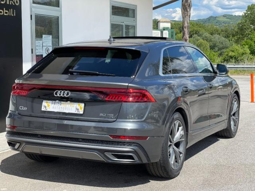 AUDI Q8 Elettrica-Diesel in vendita a Senise (Potenza) ABS, Adaptive Cruise Control, Adatta a portatori di handicap, Airbag, Airbag Laterale, Airbag Passeggero, Alzacristalli Elettrici, Android auto, Appoggiabraccia centrale, Appoggiatesta posteriore, Assetto sportivo, Autoradio, Autoradio digitale, Bloccasterzo Meccanico, Blue and Me, Bracciolo, Cambio al volante, Cerchi in Lega, Chiave con transponder, Chiusura Centralizzata, Climatizzatore Automatico, Climatizzatore bizona, Comandi al volante, Comandi vocali, Computer Bordo, Controllo Trazione (TSC - ASR), Correttore assetto fari, Cruise Control, EDS (Antislittamento in partenza), ESP (Controllo stabilita), Fari LED, Fendinebbia, Frenata di emergenza assistita, Idroguida, Immobilizzatore Elettronico, Indicatore temperatura esterna, Interni in materiale pregiato, Interni Pelle, Isofix, Kit ruote antipanne, Kit vivavoce, Lavatergifari, Luci diurne, Luci diurne LED, Navigatore, Parabrezza riscaldabile, Paraurti in tinta, Parcheggio assistito, Park Distance Control, Partenza assistita su pendenza, Portellone posteriore elettrico, Presa USB / AUX, Regolazione Sedili Elettrica, Retrovisori ripiegabili elettricamente, Sedile guida regolabile in altezza, Sedili posteriori sdoppiabili, Sedili sportivi, Sensori di parcheggio anteriori, Sensori di parcheggio posteriori, Sensori Luci, Sensori Pioggia, Servosterzo, Sistema di chiamata d'emergenza, Sistema di controllo pressione pneumatici, Sistema elettronico della stab, Specchietti Elettrici, Start e Stop, Sterzo regolabile in altezza, Supporto lombare, Tagliandi certificati, Telecamera Posteriore, Tetto panoramico, Tettuccio Apribile, Touch, Trazione Integrale, Veicolo non fumatori, Vetri Oscurati, Volante in pelle, Volante multifunzione