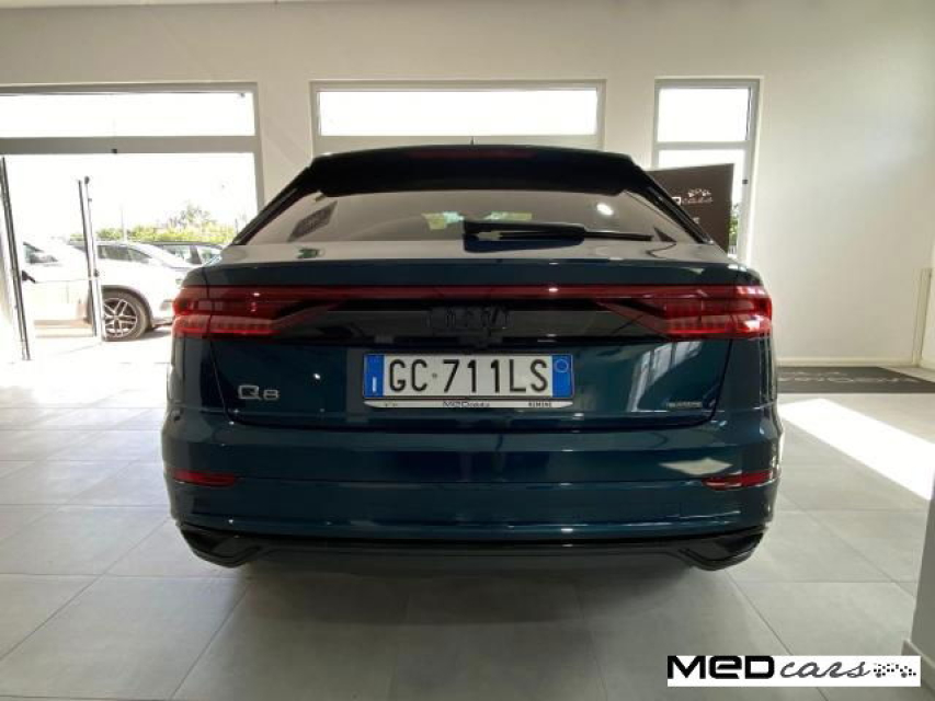 AUDI Q8 Elettrica-Benzina in vendita a Rimini (Rimini) ABS, Airbag, Airbag Laterale, Airbag Passeggero, Airbag testa, Alzacristalli Elettrici, Antifurto elettronico, Appoggiabraccia centrale, Appoggiabraccia posteriore cen, Appoggiatesta posteriore, Autoradio, Autoradio digitale, Bloccasterzo Meccanico, Bluetooth, Bracciolo, Cambio al volante, Cerchi in Lega, Chiave con transponder, Chiusura Centralizzata, Climatizzatore Automatico, Climatizzatore bizona, Comandi al volante, Comandi vocali, Computer Bordo, Controllo Trazione (TSC - ASR), Correttore assetto fari, Cruise Control, ESP (Controllo stabilita), Fari full-LED, Fari LED, Frenata di emergenza assistita, Freno di stazionamento elettrico, Idroguida, Immobilizzatore Elettronico, Indicatore temperatura esterna, Interni in materiale pregiato, Interni in tinta, Interni Pelle, Isofix, Lane assist (controllo corsia), Lavatergifari, Leve al volante, Limitatore di velocita, Luce d'ambiente, Luci diurne LED, Marmitta catalitica, Navigatore, Paraurti in tinta, Park Distance Control, Portellone posteriore elettrico, Presa USB / AUX, Regolazione Sedili Elettrica, Retrovisori ripiegabili elettricamente, Ruotino di scorta, Schermo multifunzione, Sedile guida regolabile in altezza, Sedili posteriori sdoppiabili, Sedili Riscaldati, Sensori di parcheggio anteriori, Sensori di parcheggio posteriori, Sensori Luci, Sensori Pioggia, Servosterzo, Sistema di controllo pressione pneumatici, Specchietti Elettrici, Start e Stop, Supporto lombare, Tagliandi certificati, Telecamera Posteriore, Touch, Trazione Integrale, Veicolo non fumatori, Vetri Oscurati, Volante in pelle, Volante multifunzione