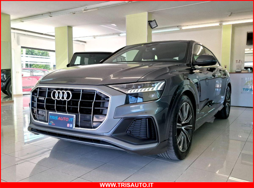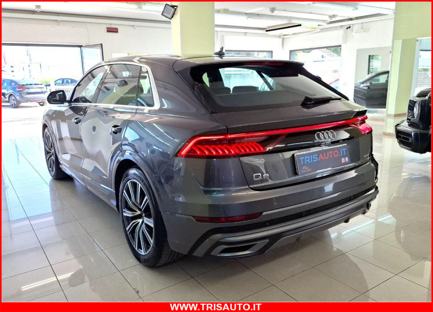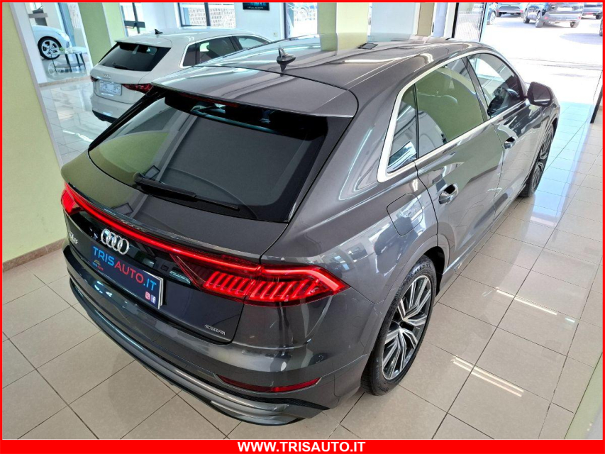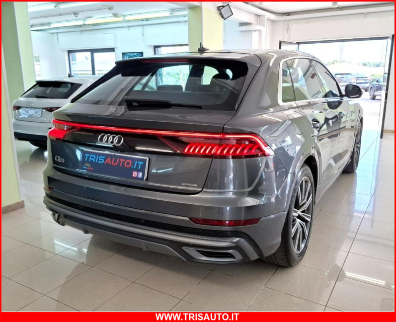 AUDI Q8 Elettrica-Diesel in vendita a Taranto (Taranto) ABS, Airbag, Airbag Laterale, Airbag Passeggero, Airbag posteriore, Airbag testa, Alzacristalli Elettrici, Appoggiabraccia centrale, Appoggiabraccia posteriore cen, Appoggiatesta posteriore, Assetto sportivo, Autoradio digitale, Avviso di distanza, Bluetooth, Cambio al volante, Cerchi in Lega, Chiave con transponder, Chiusura Centralizzata, Chiusura centralizzata telecomandata, Climatizzatore bizona, Comandi al volante, Comandi vocali, Computer Bordo, Controllo Trazione (TSC - ASR), Correttore assetto fari, Cruise Control, ESP (Controllo stabilita), Fari full-LED, Freno di stazionamento elettrico, Indicatore temperatura esterna, Interni in materiale pregiato, Interni Pelle, Isofix, Kit ruote antipanne, Kit vivavoce, Lane assist (controllo corsia), Leve al volante, Limitatore di velocita, Luce d'ambiente, Luci diurne LED, Navigatore, Paraurti in tinta, Park Distance Control, Partenza assistita su pendenza, Portellone posteriore elettrico, Presa USB / AUX, Regolazione Sedili Elettrica, Retrovisori ripiegabili elettricamente, Riconoscimento segnali stradali, Schermo multifunzione, Sedile guida regolabile in altezza, Sedili posteriori sdoppiabili, Sedili sportivi, Sensori di parcheggio anteriori, Sensori di parcheggio posteriori, Sensori Luci, Sensori Pioggia, Servosterzo, Sistema di chiamata d'emergenza, Sistema di controllo pressione pneumatici, Sistema di riconoscimento della stanchezza, Sistema elettronico della stab, Sospensioni pneumatiche, Specchietti Elettrici, Specchietto retrovisore con funzione antiabbagliamento, Start e Stop, Sterzo regolabile in altezza, Telecamera Posteriore, Touch, Trazione Integrale, Volante in pelle, Volante multifunzione