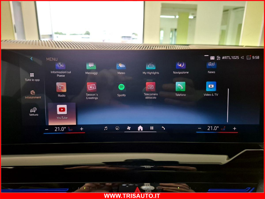 BMW Serie 5 Elettrica-Diesel in vendita a Taranto (Taranto) 360 camera, ABS, Adaptive Cruise Control, Airbag, Airbag Laterale, Airbag Passeggero, Airbag testa, Alzacristalli Elettrici, Android auto, Antifurto elettronico, Apple car play, Appoggiabraccia centrale, Appoggiabraccia posteriore cen, Appoggiatesta posteriore, Assetto sportivo, Autoradio digitale, Avviso di distanza, Blind spot monitor, Bluetooth, Cambio al volante, Carica smartphone a induzione, Cerchi in Lega, Chiave con transponder, Chiusura Centralizzata, Chiusura centralizzata telecomandata, Climatizzatore aut. 4 zone, Comandi al volante, Comandi vocali, Computer Bordo, Controllo Trazione (TSC - ASR), Correttore assetto fari, Cruise Control Adattivo, EDS (Antislittamento in partenza), ESP (Controllo stabilita), Fari full-LED, Frenata di emergenza assistita, Freno di stazionamento elettrico, Head-up display, Impianto audio, Indicatore temperatura esterna, Interni in materiale pregiato, Interni Pelle, Isofix, Kit ruote antipanne, Kit vivavoce, Lane assist (controllo corsia), Leve al volante, Limitatore di velocita, Luce d'ambiente, Luci diurne LED, Navigatore, Paraurti in tinta, Parcheggio assistito, Partenza assistita su pendenza, Portellone posteriore elettrico, Presa USB / AUX, Regolazione Sedili Elettrica, Retrovisori ripiegabili elettricamente, Riconoscimento segnali stradali, Schermo multifunzione, Sedile guida regolabile in altezza, Sedili posteriori sdoppiabili, Sedili Riscaldati, Sedili sportivi, Sedili ventilati, Sensori di parcheggio anteriori, Sensori di parcheggio posteriori, Sensori Luci, Sensori Pioggia, Servosterzo, Sistema di chiamata d'emergenza, Sistema di controllo pressione pneumatici, Sistema di riconoscimento della stanchezza, Sistema elettronico della stab, Specchietti Elettrici, Specchietto retrovisore con funzione antiabbagliamento, Spoiler, Start e Stop, Sterzo regolabile in altezza, Streaming musicale integrato, Supporto lombare, Tagliandi certificati, Telecamera Posteriore, Tendine parasole, Touch, Trazione Integrale, Vetri Oscurati, Volante in pelle, Volante multifunzione