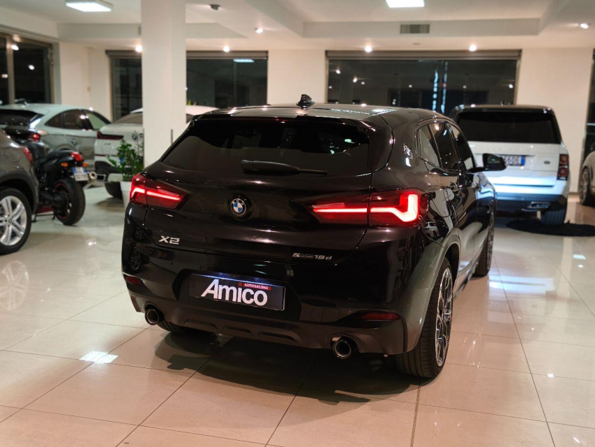 BMW X2 Diesel in vendita a San Michele Salentino (Brindisi) ABS, Adaptive Cruise Control, Airbag, Airbag Laterale, Airbag Passeggero, Airbag posteriore, Airbag testa, Alzacristalli Elettrici, Android auto, Apple car play, Appoggiabraccia centrale, Appoggiatesta posteriore, Autoradio, Autoradio digitale, Avviso di distanza, Bluetooth, Bracciolo, Cambio al volante, Cerchi in Lega, Chiave con transponder, Climatizzatore Automatico, Climatizzatore bizona, Comandi al volante, Computer Bordo, Controllo Trazione (TSC - ASR), Correttore assetto fari, Cruise Control, ESP (Controllo stabilita), Fari full-LED, Fari LED, Frenata di emergenza assistita, Freno di stazionamento elettrico, Idroguida, Immobilizzatore Elettronico, Impianto audio, Indicatore temperatura esterna, Interni Pelle, Lane assist (controllo corsia), Leve al volante, Luce d'ambiente, Luci diurne, Luci diurne LED, Navigatore, Park Distance Control, Partenza assistita su pendenza, Portellone posteriore elettrico, Presa USB / AUX, Riconoscimento segnali stradali, Schermo multifunzione, Sedili posteriori sdoppiabili, Sedili sportivi, Sensori di parcheggio anteriori, Sensori di parcheggio posteriori, Sensori Luci, Sensori Pioggia, Sistema di chiamata d'emergenza, Sistema di controllo pressione pneumatici, Specchietti Elettrici, Start e Stop, Sterzo regolabile in altezza, Tagliandi certificati, Telecamera Posteriore, Touch, Veicolo non fumatori, Volante in pelle, Volante multifunzione