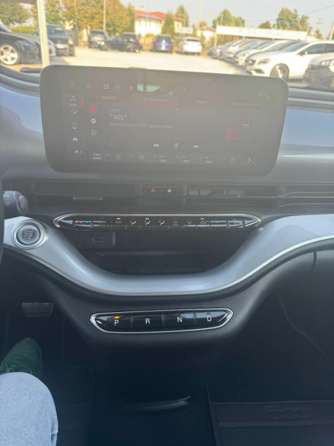 FIAT 500 E Elettrica in vendita a Ponte di Piave (Treviso) ABS, Adatta ai neopatentati, Airbag, Airbag Laterale, Airbag Passeggero, Airbag posteriore, Airbag testa, Alzacristalli Elettrici, Android auto, Antifurto, Antifurto satellitare, Apple car play, Appoggiatesta posteriore, Autoradio, Autoradio digitale, Avviso di distanza, Blind spot monitor, Bloccasterzo Meccanico, Blue and Me, Bluetooth, Bracciolo, Carica smartphone a induzione, Caricatore CD, Cerchi in Lega, Chiave con transponder, Chiusura Centralizzata, Chiusura centralizzata telecomandata, City Safety, Climatizzatore Automatico, Climatizzatore bizona, Climatizzatore Manuale, Comandi al volante, Comandi vocali, Computer Bordo, Controllo Trazione (TSC - ASR), Correttore assetto fari, Cruise Control, Cruise Control Adattivo, EDS (Antislittamento in partenza), ESP (Controllo stabilita), Fari bi-Xeno, Fari full-LED, Fari LED, Fari Xenon, Fendinebbia, Frenata di emergenza assistita, Freno di stazionamento elettrico, Idroguida, Immobilizzatore Elettronico, Impianto audio, Indicatore temperatura esterna, Interni in materiale pregiato, Interni in tinta, Isofix, Kit vivavoce, Lane assist (controllo corsia), Lettore CD, Limitatore di velocita, Luce d'ambiente, Luci diurne LED, Marmitta catalitica, Navigatore, Paraurti in tinta, Pneumatici quattro stagioni, Presa USB / AUX, Riconoscimento segnali stradali, Ruota di scorta, Schermo multifunzione, Sedile guida regolabile in altezza, Sensori Luci, Sensori Pioggia, Servosterzo, Servotronic, Sistema di chiamata d'emergenza, Sistema di controllo pressione pneumatici, Sistema elettronico della stab, Specchietti Elettrici, Spoiler, Start e Stop, Sterzo regolabile in altezza, Tagliandi certificati, Touch, Veicolo non fumatori, Volante in pelle, Volante multifunzione