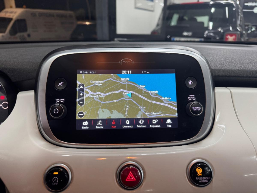 FIAT 500X Diesel in vendita a Andria (Barletta-Andria-Trani) ABS, Adatta ai neopatentati, Airbag, Airbag Laterale, Airbag Passeggero, Alzacristalli Elettrici, Autoradio digitale, Bluetooth, Cerchi in Lega, Chiave con transponder, Chiusura Centralizzata, Chiusura centralizzata telecomandata, City Safety, Climatizzatore Automatico, Comandi al volante, Comandi vocali, Computer Bordo, Controllo Trazione (TSC - ASR), Correttore assetto fari, Cruise Control, Fendinebbia, Frenata di emergenza assistita, Freno di stazionamento elettrico, Gancio Traino, Immobilizzatore Elettronico, Indicatore temperatura esterna, Lane assist (controllo corsia), Limitatore di velocita, Luci diurne, Navigatore, Partenza assistita su pendenza, Presa USB / AUX, Riconoscimento segnali stradali, Ruota di scorta, Schermo multifunzione, Sedile guida regolabile in altezza, Sedili posteriori sdoppiabili, Sensori di parcheggio posteriori, Servosterzo, Sistema di controllo pressione pneumatici, Specchietti Elettrici, Start e Stop, Sterzo regolabile in altezza, Touch, Volante in pelle, Volante multifunzione