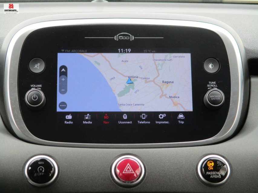 FIAT 500X in vendita a Vittoria (Ragusa) ABS, Airbag, Airbag Laterale, Airbag Passeggero, Airbag posteriore, Airbag testa, Alzacristalli Elettrici, Autoradio digitale, Bluetooth, Bracciolo, Cerchi in Lega, Chiave con transponder, Chiusura Centralizzata, Chiusura centralizzata telecomandata, Climatizzatore bizona, Comandi al volante, Comandi vocali, Computer Bordo, Controllo Trazione (TSC - ASR), Correttore assetto fari, ESP (Controllo stabilita), Fendinebbia, Filtro antiparticolato, Freno di stazionamento elettrico, Immobilizzatore Elettronico, Interni Pelle, Isofix, Kit vivavoce, Lane assist (controllo corsia), Luci diurne, Navigatore, Presa USB / AUX, Riconoscimento segnali stradali, Ruotino di scorta, Sedile guida regolabile in altezza, Sedili posteriori sdoppiabili, Sensori di parcheggio anteriori, Sensori di parcheggio posteriori, Sensori Luci, Sensori Pioggia, Servosterzo, Sistema di controllo pressione pneumatici, Specchietti Elettrici, Start e Stop, Sterzo regolabile in altezza, Telecamera Posteriore, Volante in pelle, Volante multifunzione