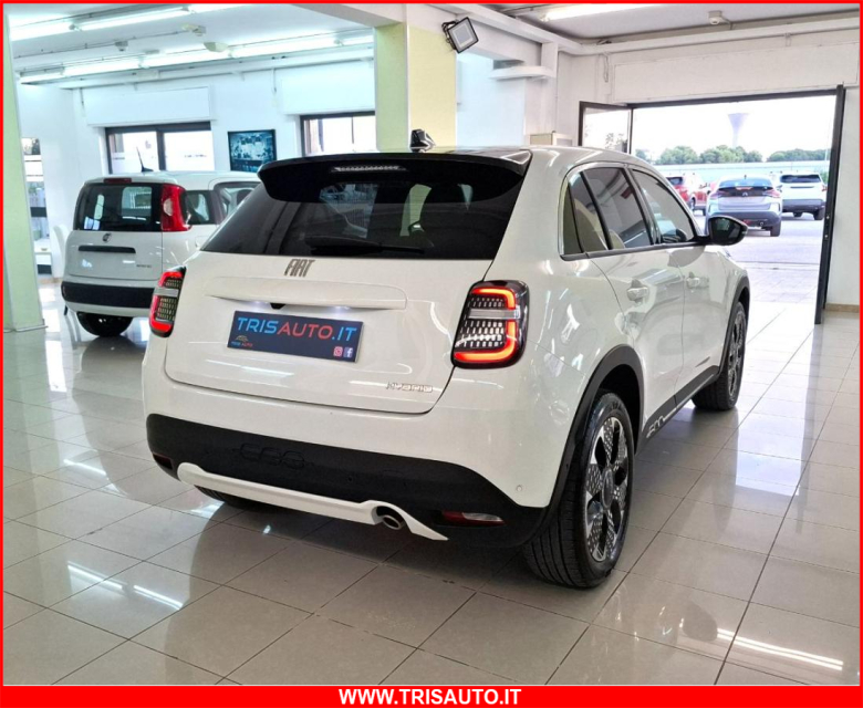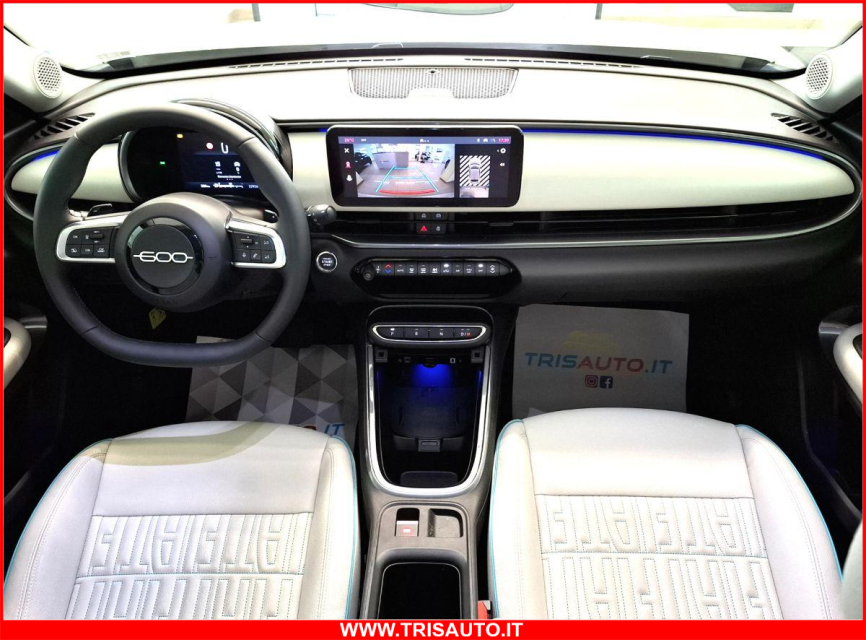 FIAT 600 Elettrica-Benzina in vendita a Taranto (Taranto) ABS, Adaptive Cruise Control, Airbag, Airbag Laterale, Airbag Passeggero, Airbag testa, Alzacristalli Elettrici, Android auto, Apple car play, Appoggiabraccia centrale, Appoggiatesta posteriore, Autoradio digitale, Avviso di distanza, Blind spot monitor, Bluetooth, Cambio al volante, Carica smartphone a induzione, Cerchi in Lega, Chiave con transponder, Chiusura Centralizzata, Chiusura centralizzata telecomandata, Climatizzatore Automatico, Comandi al volante, Comandi vocali, Computer Bordo, Controllo Trazione (TSC - ASR), Correttore assetto fari, Cruise Control Adattivo, ESP (Controllo stabilita), Fari full-LED, Fendinebbia, Frenata di emergenza assistita, Freno di stazionamento elettrico, Indicatore temperatura esterna, Interni in materiale pregiato, Interni Pelle, Isofix, Kit vivavoce, Lane assist (controllo corsia), Leve al volante, Limitatore di velocita, Luci diurne LED, Navigatore, Paraurti in tinta, Park Distance Control, Portellone posteriore elettrico, Presa USB / AUX, Regolazione Sedili Elettrica, Retrovisori ripiegabili elettricamente, Riconoscimento segnali stradali, Schermo multifunzione, Sedile guida regolabile in altezza, Sedili massaggianti, Sedili posteriori sdoppiabili, Sedili Riscaldati, Sensori di parcheggio anteriori, Sensori di parcheggio posteriori, Sensori Luci, Sensori Pioggia, Servosterzo, Sistema di controllo pressione pneumatici, Sistema di riconoscimento della stanchezza, Sistema elettronico della stab, Specchietti Elettrici, Specchietto retrovisore con funzione antiabbagliamento, Spoiler, Start e Stop, Sterzo regolabile in altezza, Telecamera Posteriore, Touch, Vetri Oscurati, Volante in pelle, Volante multifunzione