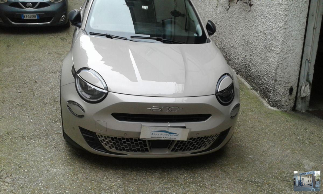 FIAT 600e Elettrica in vendita a Roma (Roma) 360 camera, ABS, Adatta a portatori di handicap, Adatta ai neopatentati, Airbag, Airbag Laterale, Airbag Passeggero, Alzacristalli Elettrici, Appoggiabraccia centrale, Appoggiatesta posteriore, Autoradio digitale, Avviso di distanza, Blind spot monitor, Bloccasterzo Meccanico, Bluetooth, Chiave con transponder, Chiusura centralizzata telecomandata, City Safety, Climatizzatore bizona, Controllo Trazione (TSC - ASR), Correttore assetto fari, ESP (Controllo stabilita), Fari LED, Fendinebbia, Frenata di emergenza assistita, Freno di stazionamento elettrico, Hotspot Wi-Fi, Immobilizzatore Elettronico, Indicatore temperatura esterna, Isofix, Lettore CD MP3, Luce d'ambiente, Luci diurne, Paraurti in tinta, Parcheggio assistito, Park Distance Control, Partenza assistita su pendenza, Presa USB / AUX, Schermo multifunzione, Sedile guida regolabile in altezza, Sedili posteriori sdoppiabili, Sensori di parcheggio anteriori, Sensori di parcheggio posteriori, Sensori Luci, Sensori Pioggia, Servosterzo, Sistema di controllo pressione pneumatici, Specchietti Elettrici, Specchietto retrovisore con funzione antiabbagliamento, Sterzo regolabile in altezza, Tagliandi certificati, Veicolo non fumatori