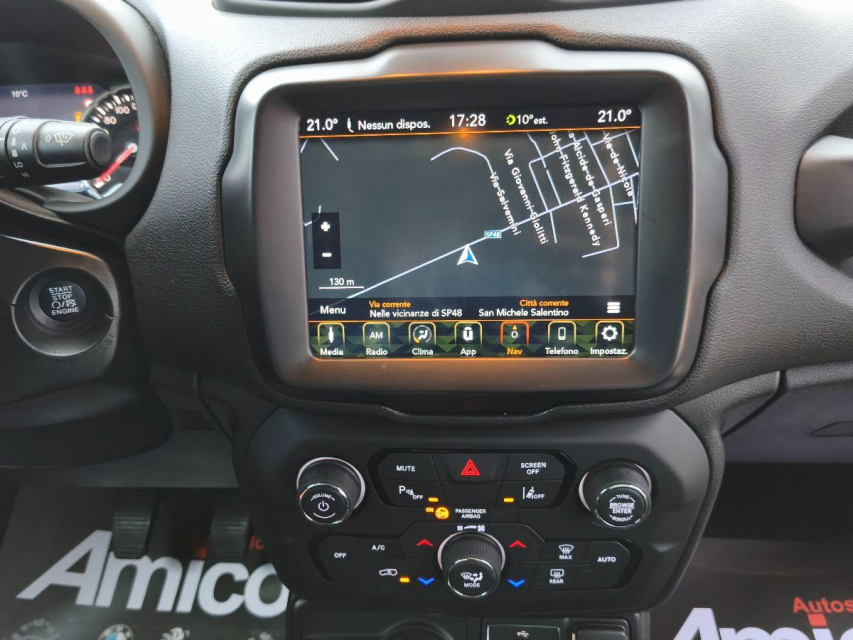 JEEP Renegade Diesel in vendita a San Michele Salentino (Brindisi) ABS, Adatta ai neopatentati, Airbag, Airbag Laterale, Airbag Passeggero, Airbag posteriore, Airbag testa, Alzacristalli Elettrici, Android auto, Apple car play, Appoggiatesta posteriore, Autoradio, Autoradio digitale, Blue and Me, Bluetooth, Bracciolo, Cerchi in Lega, Chiave con transponder, Chiusura Centralizzata, Climatizzatore Automatico, Climatizzatore bizona, Comandi al volante, Comandi vocali, Computer Bordo, Controllo Trazione (TSC - ASR), Cruise Control, ESP (Controllo stabilita), Fari full-LED, Fari LED, Frenata di emergenza assistita, Freno di stazionamento elettrico, Idroguida, Indicatore temperatura esterna, Kit vivavoce, Lettore CD, Lettore CD MP3, Limitatore di velocita, Luci diurne, Luci diurne LED, Navigatore, Paraurti in tinta, Parcheggio assistito, Park Distance Control, Partenza assistita su pendenza, Presa USB / AUX, Riconoscimento segnali stradali, Schermo multifunzione, Sedile guida regolabile in altezza, Sedili posteriori sdoppiabili, Sedili sportivi, Sensori di parcheggio anteriori, Sensori di parcheggio posteriori, Sensori Luci, Sensori Pioggia, Servosterzo, Specchietti Elettrici, Start e Stop, Sterzo regolabile in altezza, Tagliandi certificati, Touch, Trazione Integrale, Veicolo non fumatori, Volante in pelle, Volante multifunzione