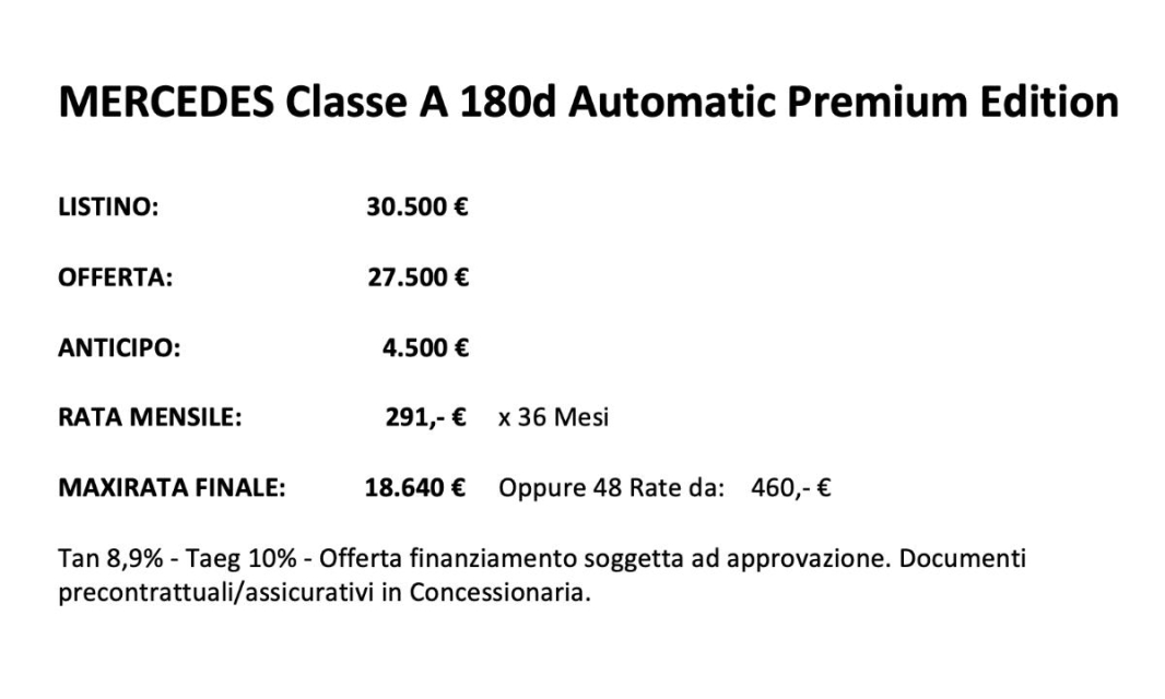 MERCEDES Classe A Diesel in vendita a Melissano (Lecce) ABS, Airbag Laterale, Airbag Passeggero, Alzacristalli Elettrici, Appoggiabraccia centrale, Autoradio, Bluetooth, Bracciolo, Cerchi in Lega, Chiusura Centralizzata, Comandi al volante, Computer Bordo, Cruise Control, ESP (Controllo stabilita), Fari LED, Fari Xenon, Filtro antiparticolato, Interni Pelle, Isofix, Kit vivavoce, Lettore CD MP3, Luci diurne LED, Navigatore, Park Distance Control, Presa USB / AUX, Retrovisori ripiegabili elettricamente, Sedili sportivi, Sensori Luci, Sensori Pioggia, Specchietti Elettrici, Tagliandi certificati, Veicolo non fumatori, Volante in pelle, Volante multifunzione