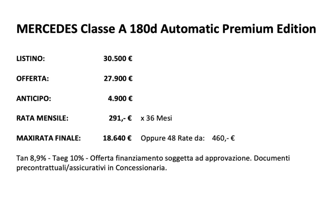 MERCEDES Classe A Diesel in vendita a Melissano (Lecce) ABS, Airbag Laterale, Airbag Passeggero, Alzacristalli Elettrici, Appoggiabraccia centrale, Autoradio, Bluetooth, Bracciolo, Cerchi in Lega, Chiusura Centralizzata, Comandi al volante, Computer Bordo, Cruise Control, ESP (Controllo stabilita), Fari LED, Fari Xenon, Filtro antiparticolato, Interni Pelle, Isofix, Kit vivavoce, Lettore CD MP3, Luci diurne LED, Navigatore, Park Distance Control, Presa USB / AUX, Retrovisori ripiegabili elettricamente, Sedili sportivi, Sensori Luci, Sensori Pioggia, Specchietti Elettrici, Tagliandi certificati, Veicolo non fumatori, Volante in pelle, Volante multifunzione