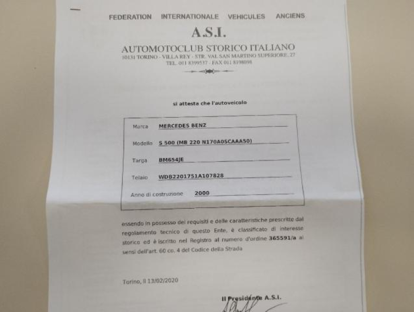 | Immatricolazione: |