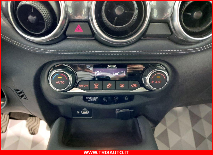NISSAN Juke Benzina in vendita a Taranto (Taranto) ABS, Adatta ai neopatentati, Airbag, Airbag Laterale, Airbag Passeggero, Airbag testa, Alzacristalli Elettrici, Appoggiabraccia centrale, Appoggiatesta posteriore, Autoradio digitale, Avviso di distanza, Bluetooth, Cerchi in Lega, Chiave con transponder, Chiusura Centralizzata, Climatizzatore Automatico, Comandi al volante, Comandi vocali, Computer Bordo, Controllo Trazione (TSC - ASR), Correttore assetto fari, Cruise Control, ESP (Controllo stabilita), Fendinebbia, Frenata di emergenza assistita, Freno di stazionamento elettrico, Indicatore temperatura esterna, Isofix, Kit vivavoce, Lane assist (controllo corsia), Limitatore di velocita, Luci diurne LED, Navigatore, Paraurti in tinta, Park Distance Control, Partenza assistita su pendenza, Presa USB / AUX, Retrovisori ripiegabili elettricamente, Riconoscimento segnali stradali, Ruotino di scorta, Schermo multifunzione, Sedile guida regolabile in altezza, Sedili posteriori sdoppiabili, Sedili sportivi, Sensori di parcheggio posteriori, Sensori Luci, Sensori Pioggia, Servosterzo, Sistema di chiamata d'emergenza, Sistema di controllo pressione pneumatici, Sistema elettronico della stab, Specchietti Elettrici, Spoiler, Start e Stop, Sterzo regolabile in altezza, Telecamera Posteriore, Touch, Vetri Oscurati, Volante in pelle, Volante multifunzione