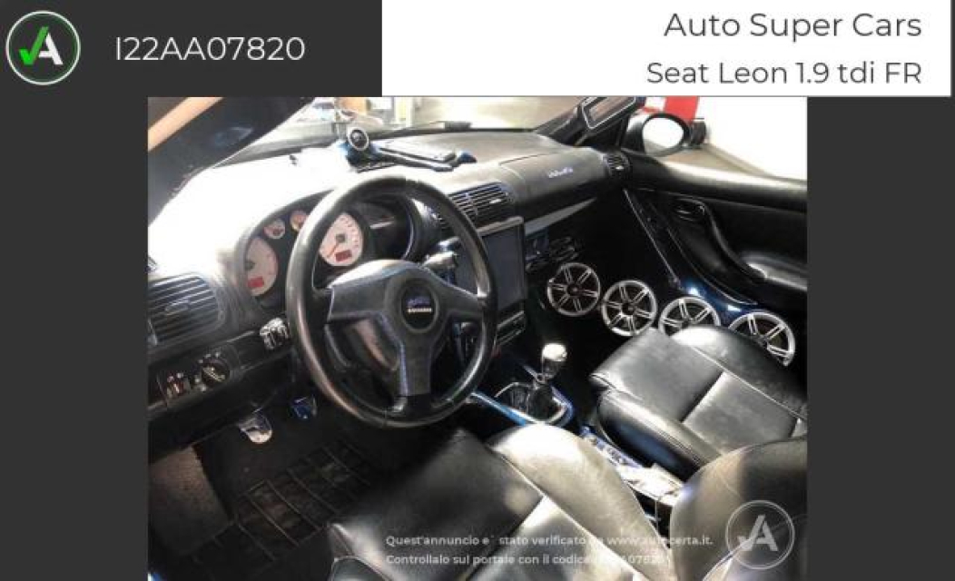 SEAT Leon Diesel in vendita a Moncalieri (Torino) ABS, Adaptive Cruise Control, Airbag, Airbag Laterale, Alzacristalli Elettrici, Antifurto, Autoradio, Cerchi in Lega, Chiusura Centralizzata, Climatizzatore Manuale, Computer Bordo, Fendinebbia, Filtro antiparticolato, Ruota di scorta, Sedili posteriori sdoppiabili, Sedili sportivi, Servosterzo, Specchietti Elettrici, Spoiler, Volante in pelle