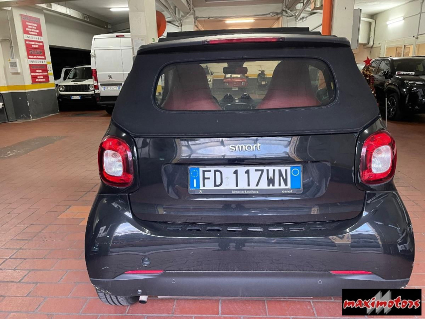 SMART Fortwo Cabrio Benzina in vendita a Roma (Roma) ABS, Adaptive Cruise Control, Adatta a portatori di handicap, Adatta ai neopatentati, Airbag, Airbag Laterale, Airbag Passeggero, Alzacristalli Elettrici, Android auto, Autoradio digitale, Bluetooth, Capote elettrica, Cerchi in Lega, Chiave con transponder, Chiusura Centralizzata, Chiusura centralizzata telecomandata, Climatizzatore Manuale, Comandi al volante, Computer Bordo, Controllo Trazione (TSC - ASR), Correttore assetto fari, Cruise Control Adattivo, EDS (Antislittamento in partenza), ESP (Controllo stabilita), Fendinebbia, Immobilizzatore Elettronico, Indicatore temperatura esterna, Interni Pelle, Kit ruote antipanne, Marmitta catalitica, Paraurti in tinta, Park Distance Control, Presa USB / AUX, Riconoscimento segnali stradali, Servosterzo, Sistema di controllo pressione pneumatici, Specchietti Elettrici, Start e Stop, Tagliandi certificati, Tetto panoramico, Tettuccio Apribile, Veicolo non fumatori, Volante in pelle, Volante multifunzione