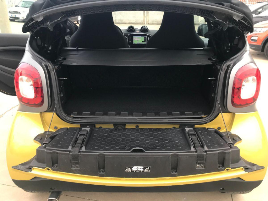 SMART Fortwo Cabrio Benzina in vendita a Comiso (Ragusa) ABS, Adatta ai neopatentati, Airbag, Airbag Laterale, Airbag Passeggero, Alzacristalli Elettrici, Autoradio, Bluetooth, Bracciolo, Cambio al volante, Capote elettrica, Cerchi in Lega, Chiave con transponder, Chiusura Centralizzata, Climatizzatore Automatico, Comandi al volante, Computer Bordo, Controllo Trazione (TSC - ASR), Correttore assetto fari, Cruise Control, ESP (Controllo stabilita), Fari LED, Fendinebbia, Immobilizzatore Elettronico, Indicatore temperatura esterna, Interni in tinta, Kit vivavoce, Luci diurne LED, Marmitta catalitica, Navigatore, Presa USB / AUX, Sedili Riscaldati, Servosterzo, Sistema di controllo pressione pneumatici, Specchietti Elettrici, Start e Stop, Sterzo regolabile in altezza, Volante in pelle, Volante multifunzione